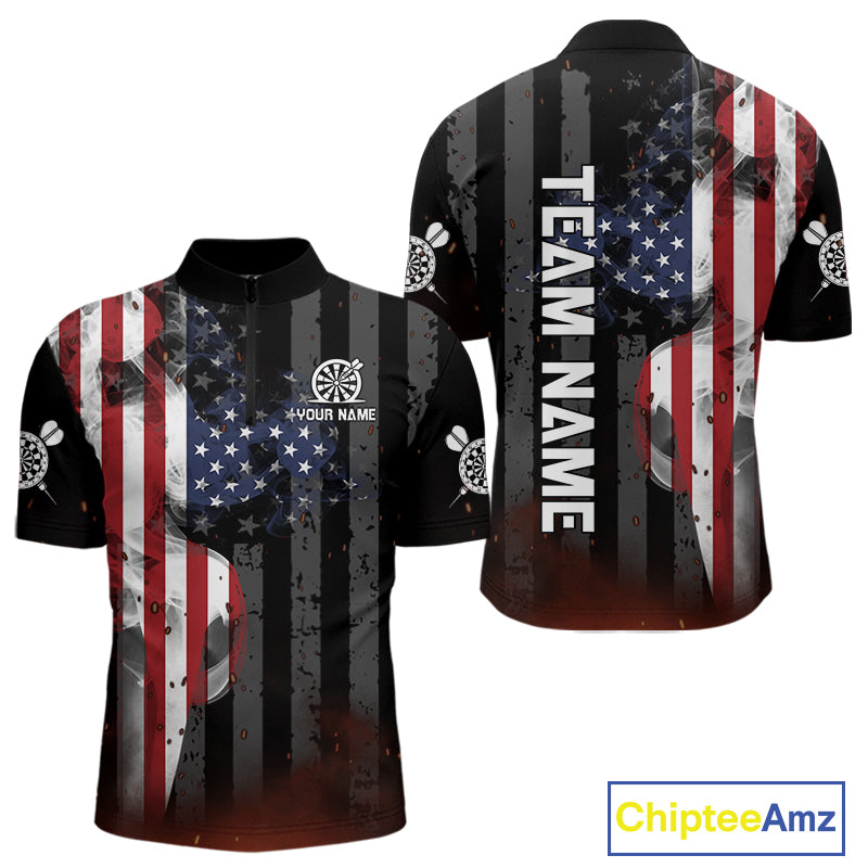 Personalized American Flag Patriotic Darts Shirt For Men Custom Darts Jersey Team Polo & 1/4 Zip TDM4922
