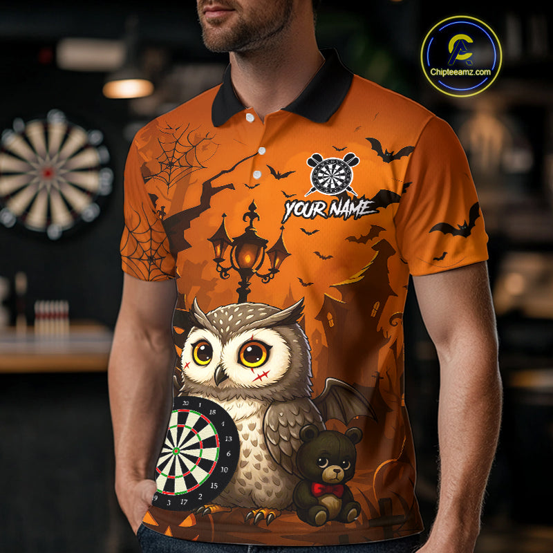 Personalized Orange Funny Owl Halloween Darts Shirt For Men Custom Pumpkin Darts Jersey TDM4929