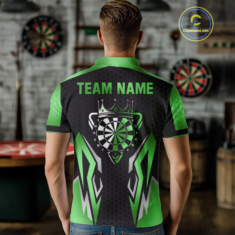 Black And Green Funny Crown Darts Shirt For Men Custom Darts Jerseys Team Polo & Quarter Zip TDM5017