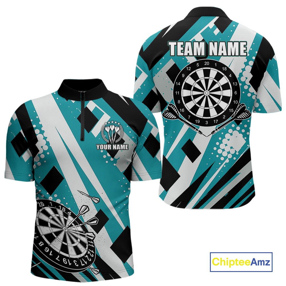 Custom Turquoise Geometric Darts Polo & Quarter Zip For Men, Darts Team Jersey Outfit TDM5027