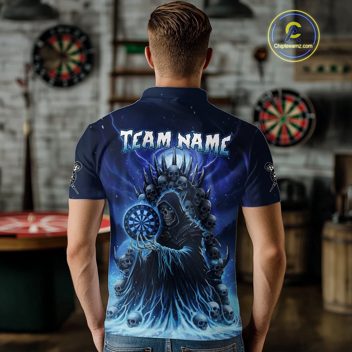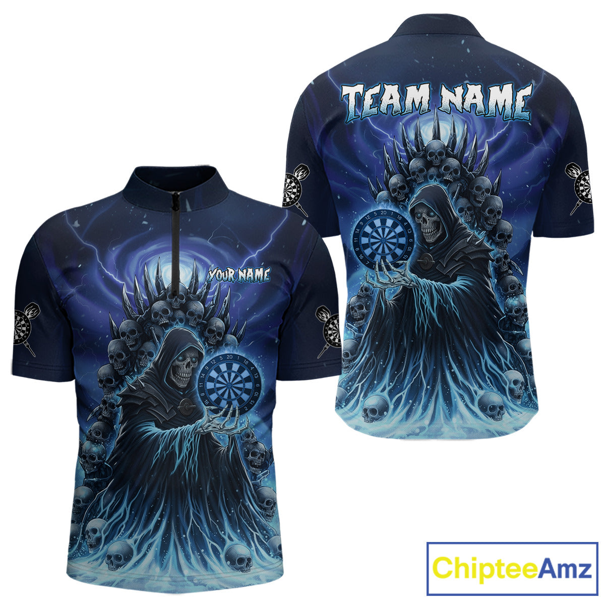 Personalized Blue Grim Reaper Darts Jersey For Men Custom Skull Dart Team Polo & Quarter Zip Shirt TDM5058