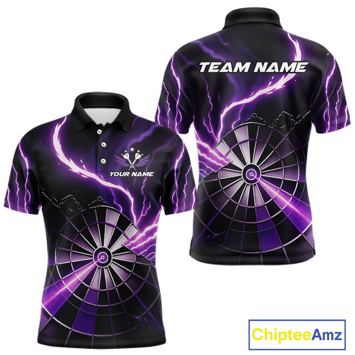 Personalized Purple Lightning Mens Dart Shirts Custom Glowing Darts Team Jersey Polo & 1/4 Zip TDM5159