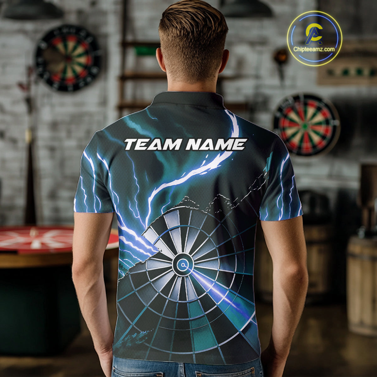 Personalized Blue Lightning Mens Dart Shirts Custom Glowing Darts Team Jersey Polo & 1/4 Zip TDM5161