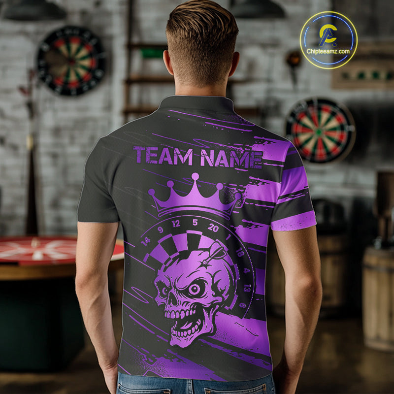 Black And Purple Funny Skull Crown Darts Shirt For Men Custom Dart Jerseys Team Polo & 1/4 Zip TDM5170