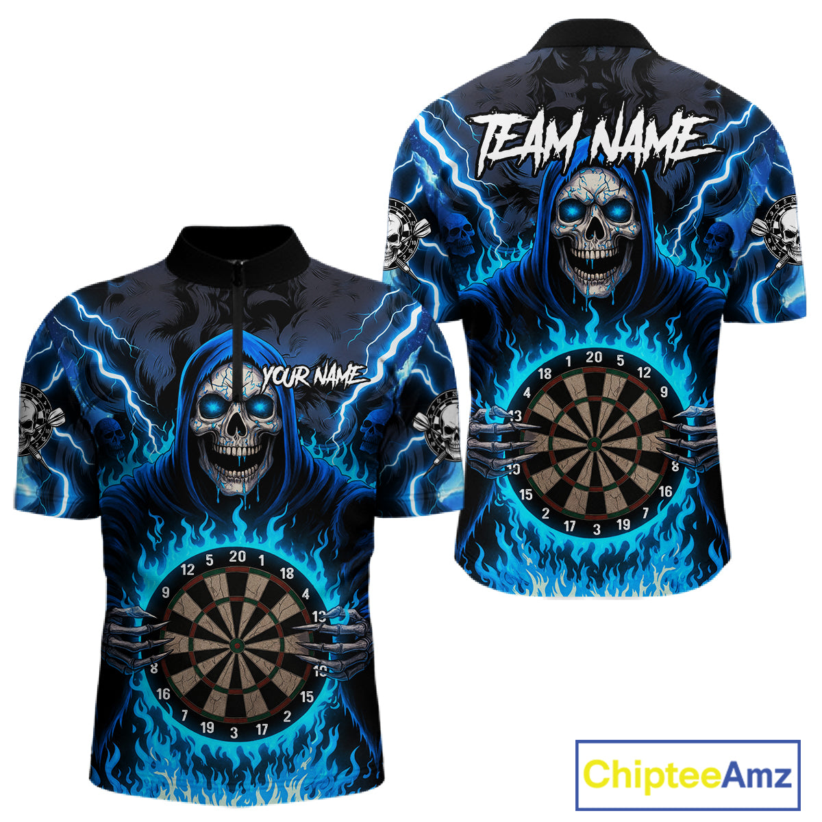 Blue Grim Reaper Thunder Lightning Mens Dart Shirts Custom Flame Dart Jerseys Team Polo & 1/4 Zip TDM5174