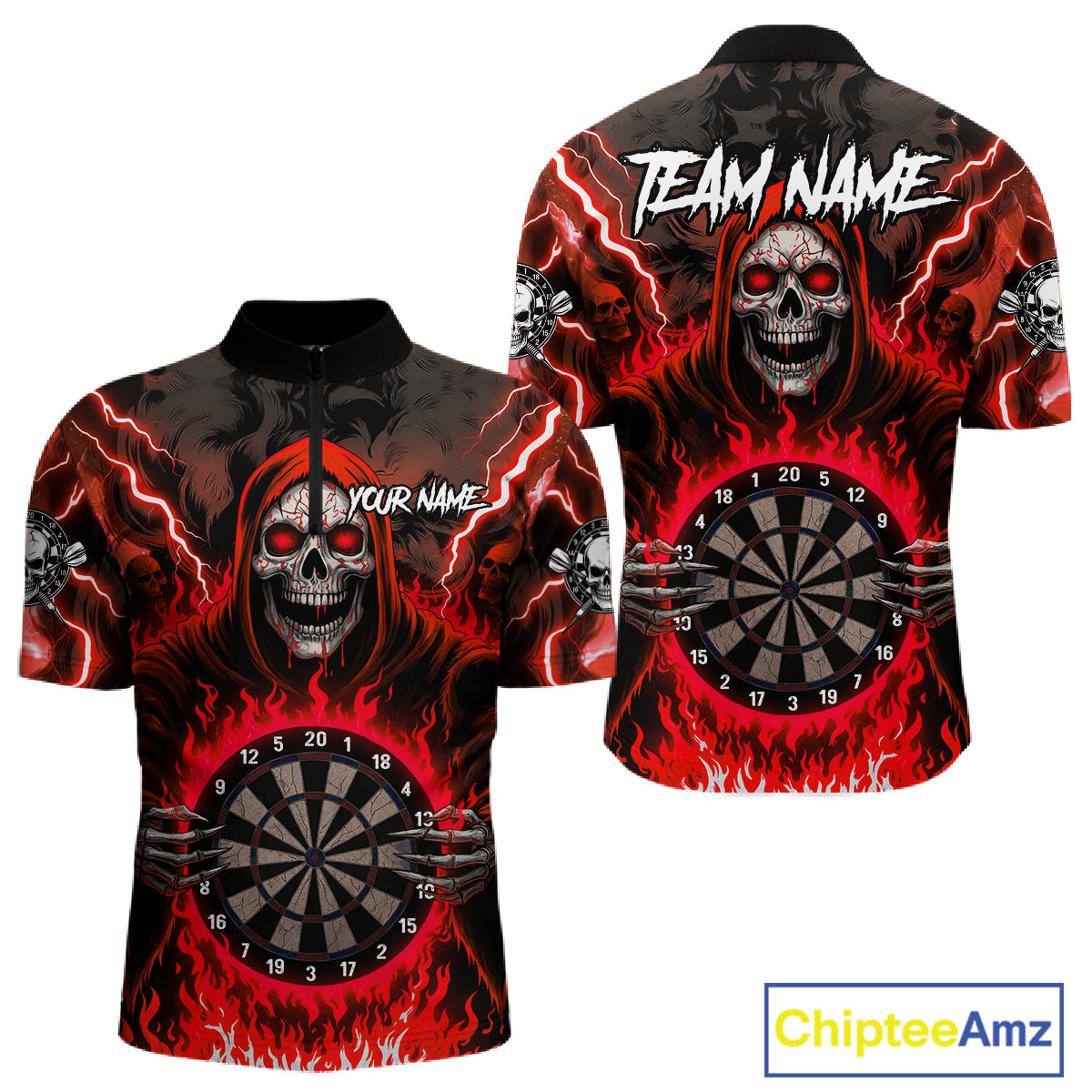 Red Grim Reaper Thunder Lightning Mens Dart Shirts Custom Flame Dart Jerseys Team Polo & 1/4 Zip TDM5175