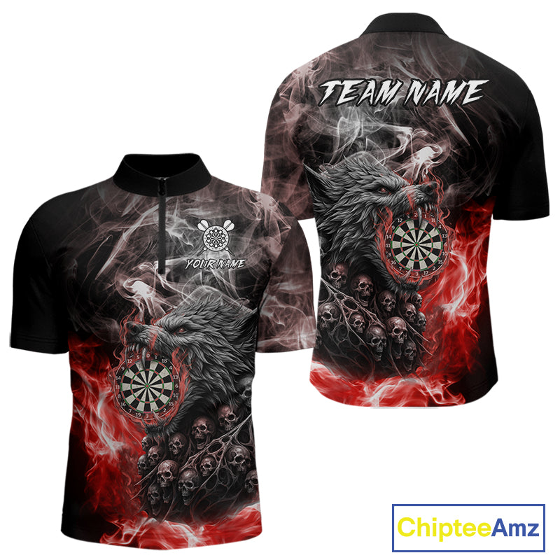Personalized Wolf And Skull Smoke Red Mens Dart Shirts Custom Dart Jerseys Team Polo & 1/4 Zip TDM5185