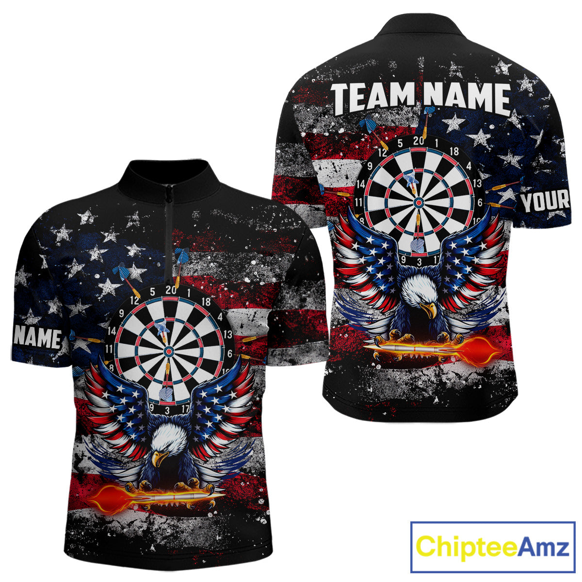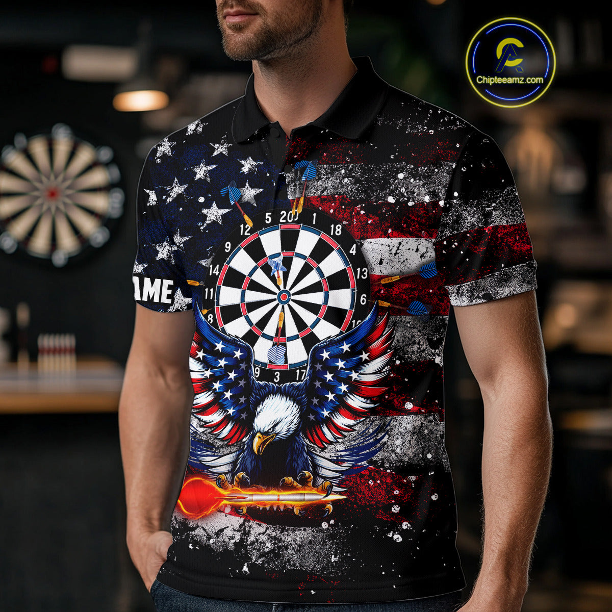 Personalized Dartboard Eagle American Flag Darts Shirt For Men, Patriotic Darts Team Jersey TDM5225