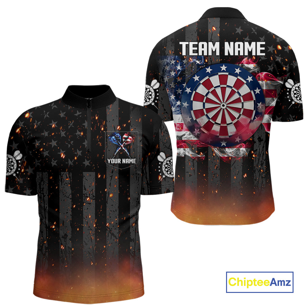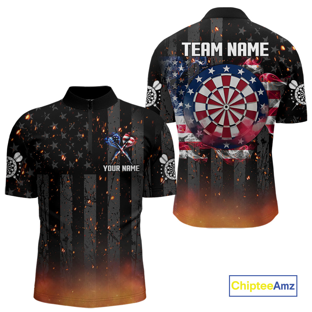 Custom US Flag Smoke Dart Shirt For Men, Patriotic Dart Jersey Pocket Option TDM5259