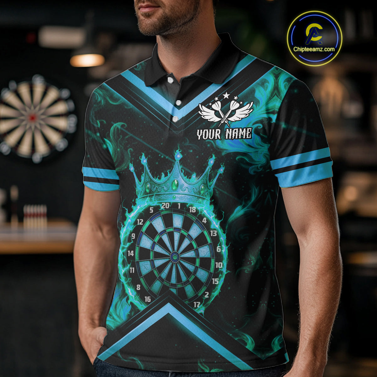 Black And Turquoise Dartboard Crown Darts Shirt For Men Custom Dart Jerseys Team Polo & 1/4 Zip TDM5280