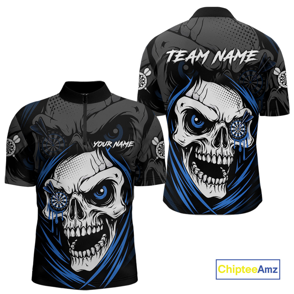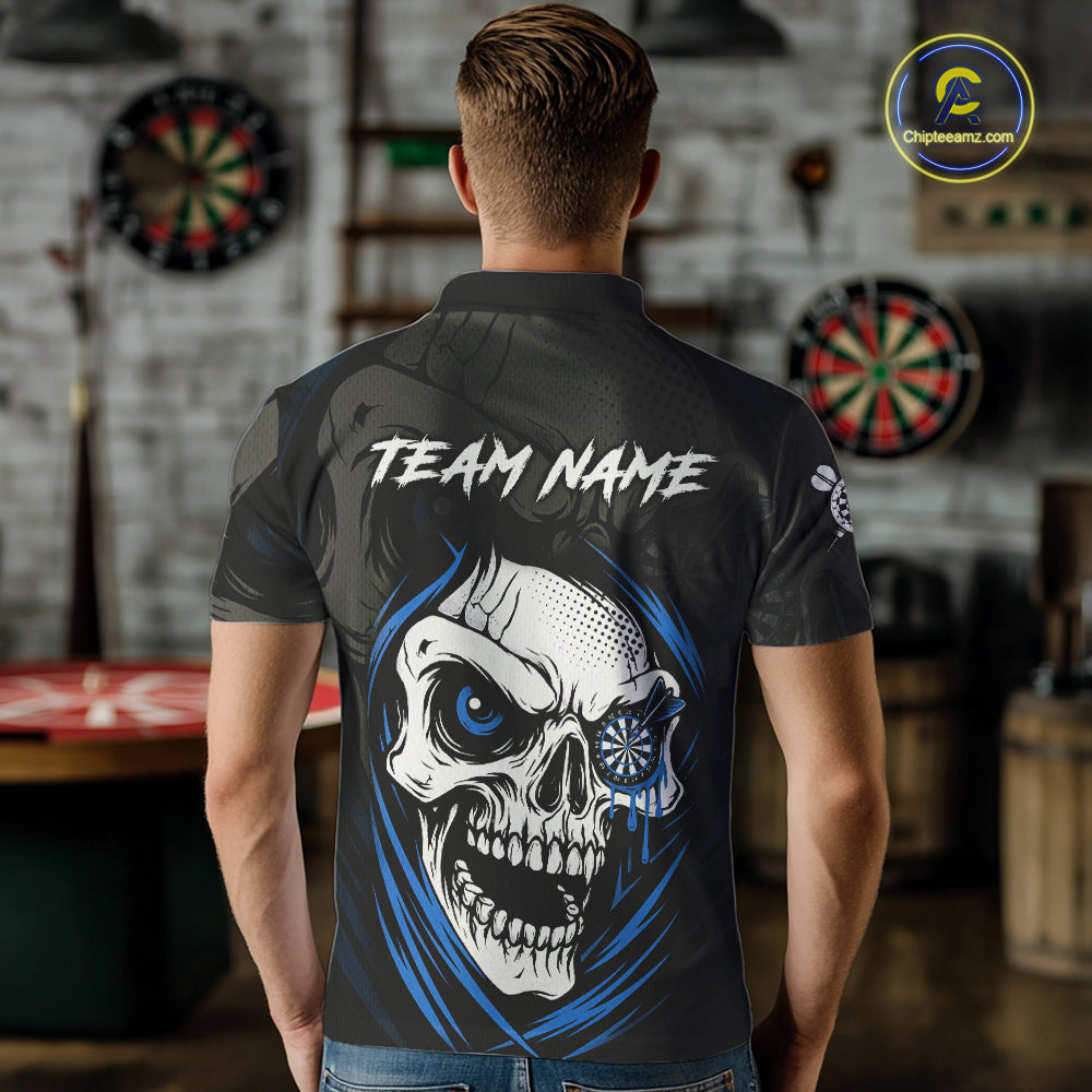 Personalized Funny Skull Darts Shirts For Men Custom Darts Jersey Team Polo & Quarter Zip |Blue TDM5296