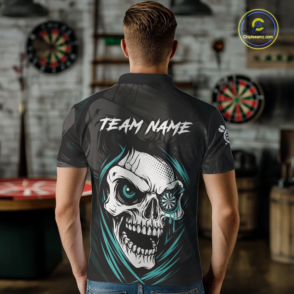 Personalized Funny Skull Darts Shirts For Men Custom Darts Jersey Team Polo & 1/4 Zip| Turquoise TDM5297
