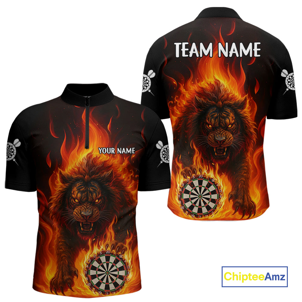 Orange Flaming Lion Darts Shirts For Men Custom Fire Darts League Jersey Team Polo & 1/4 Zip TDM5308