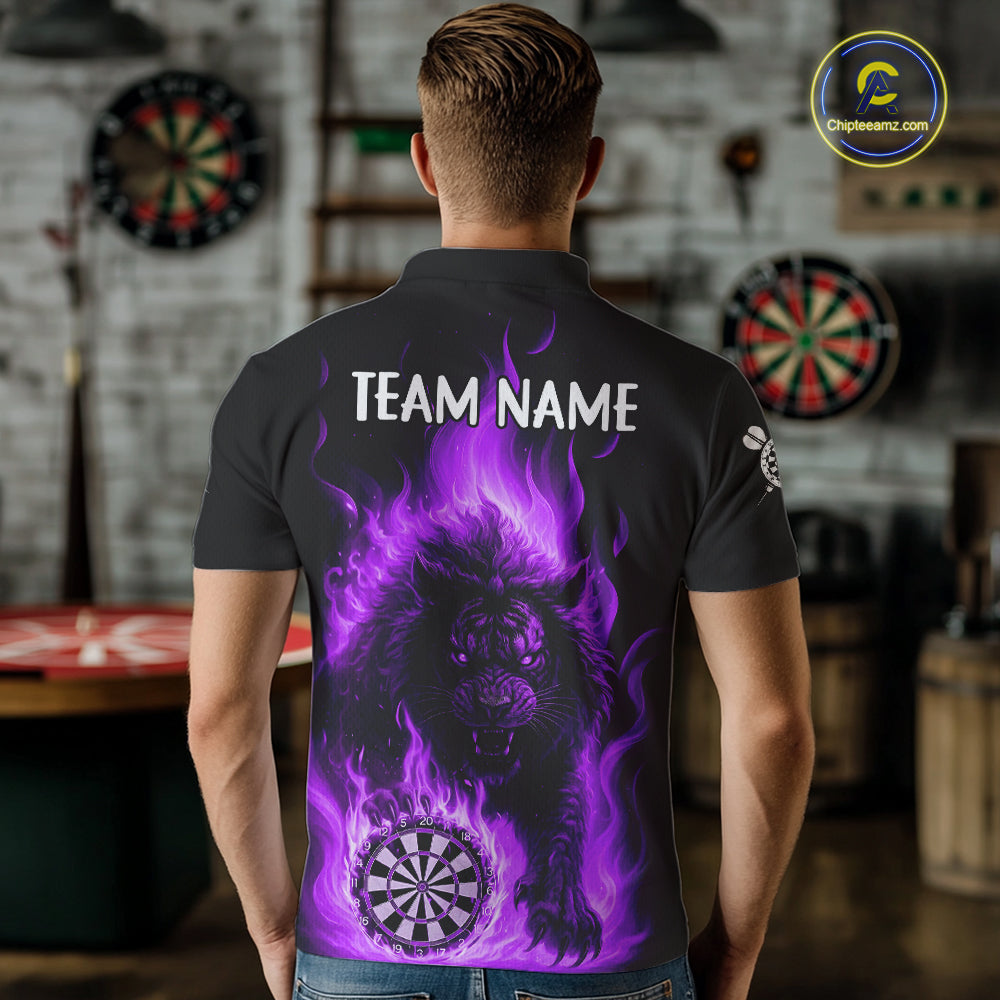 Purple Flaming Lion Darts Shirts For Men Custom Fire Darts League Jersey Team Polo & 1/4 Zip TDM5310