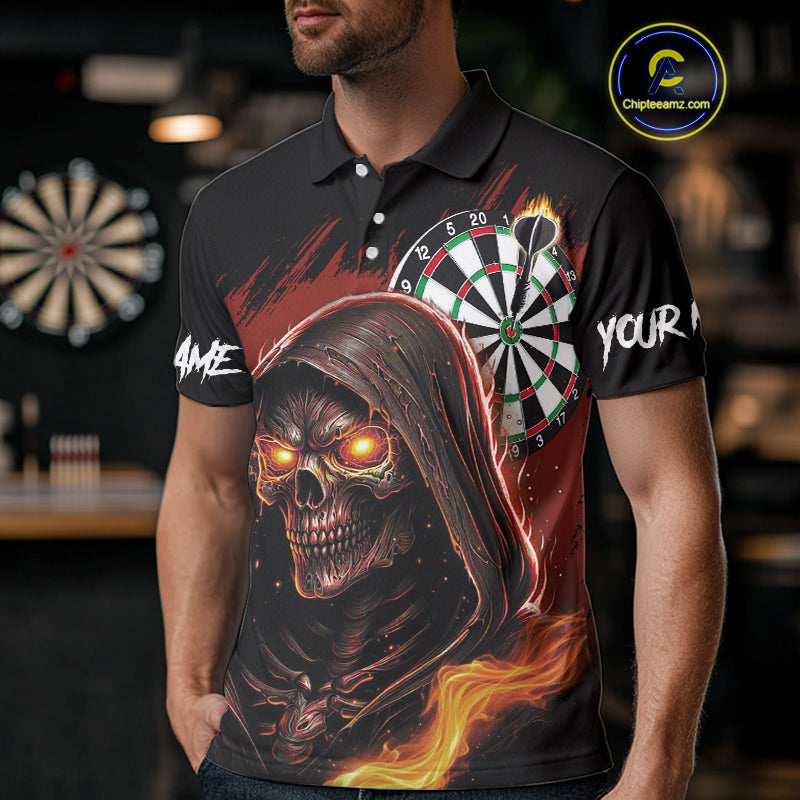 Personalized Red Death Skeleton Fire Dart Shirts For Men Custom Skull Dart Jersey Polo & 1/4 Zip TDM4891