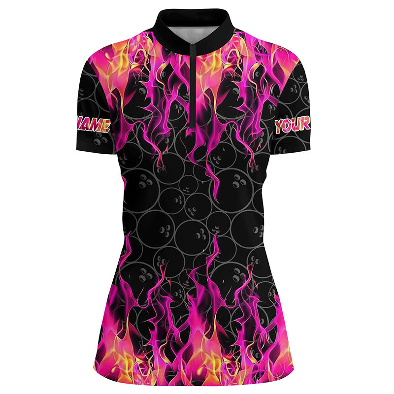 Black and Pink Flame camo Womens bowling shirts Custom Flame Bowling Shirt Team Bowling Jersey NQS8304