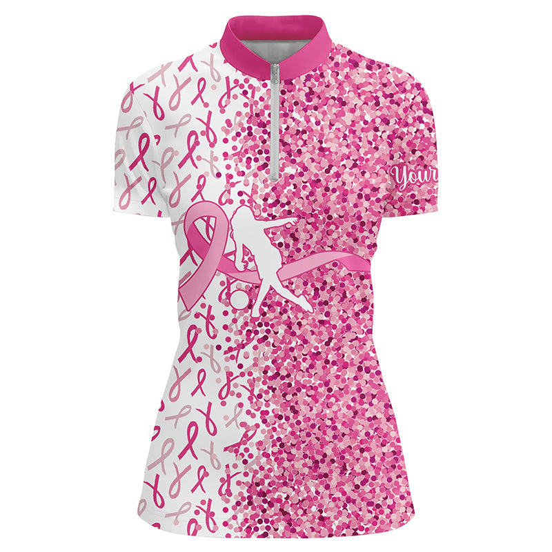 Pink glitter ribbon Bowling Shirts For Women Custom Breast cancer bowling shirts gift for bowlers NQS8261