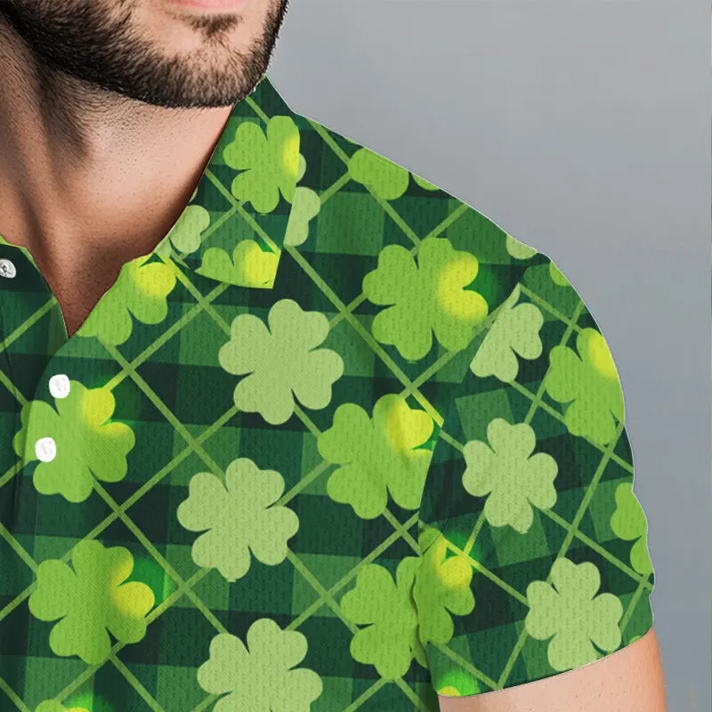 Personalized Green argyle shamrock pattern Men golf polo shirts Custom St Patrick day men golf tops NQS9546