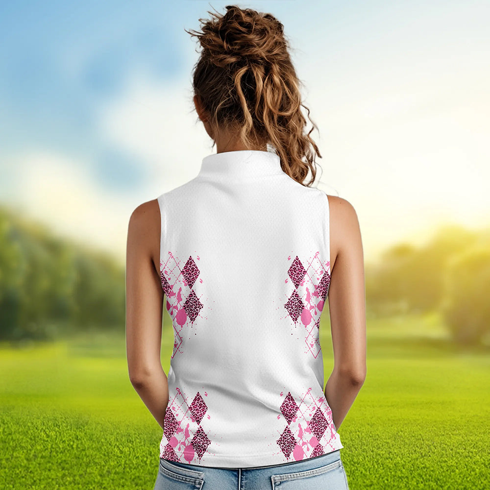 Pink Leopard argyle pattern white Women sleeveless golf polo shirt custom golf tank top for women NQS9349