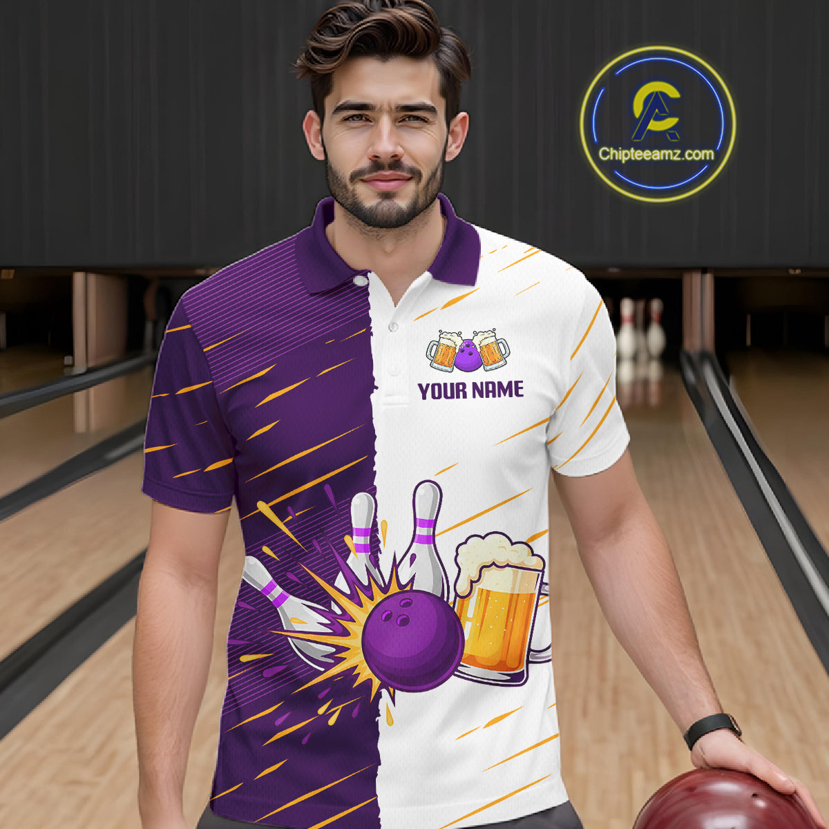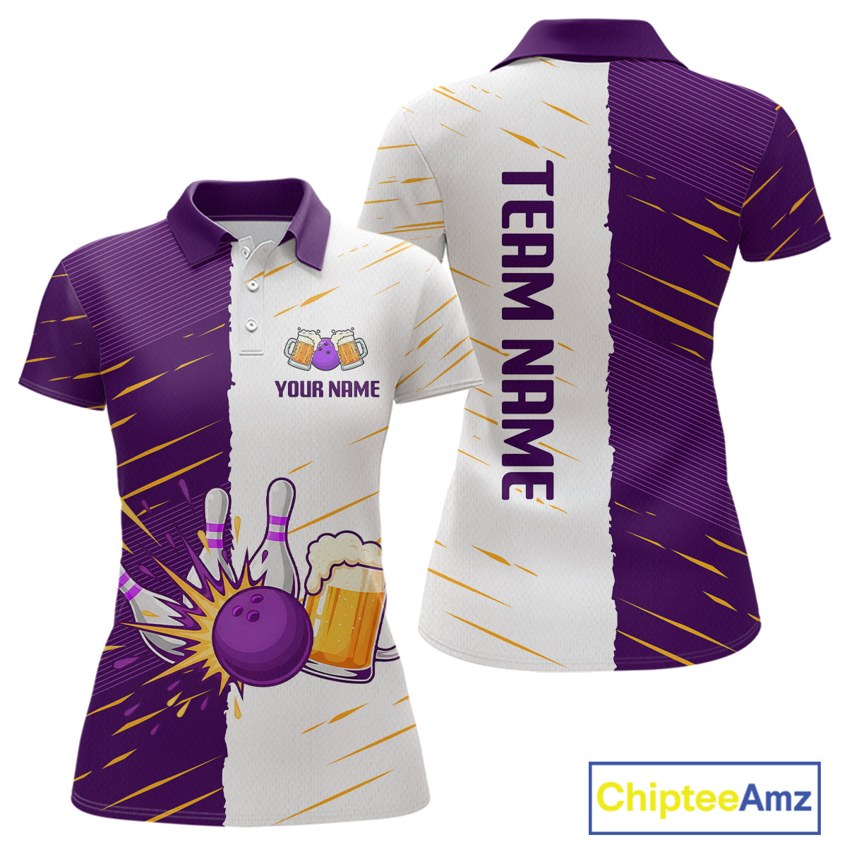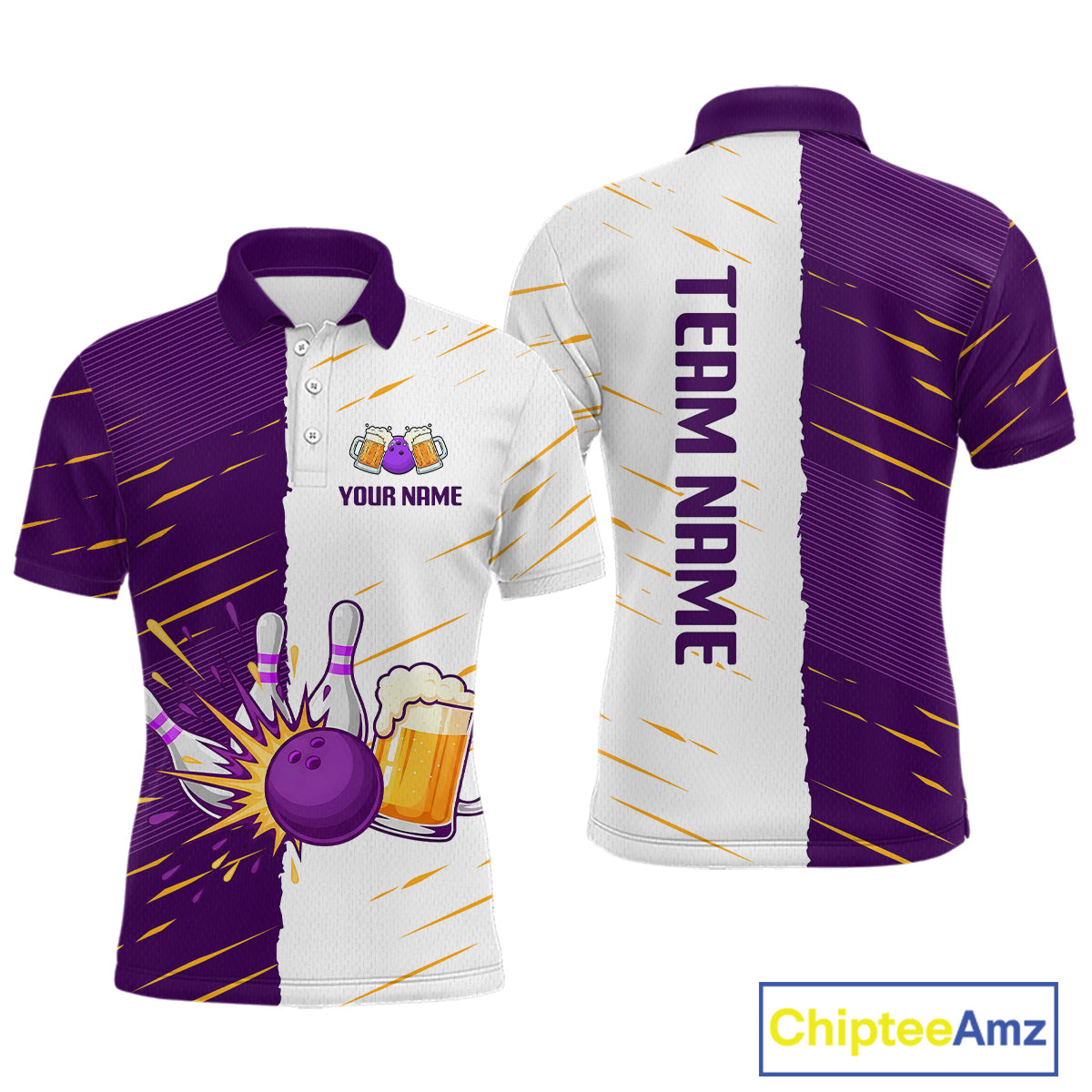 Beer Bowling Shirts Purple&White Beer Bowling Jersey for Team Women Men Bowl League MBL259
