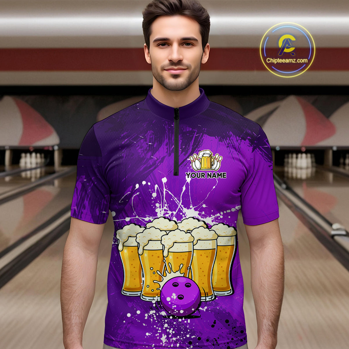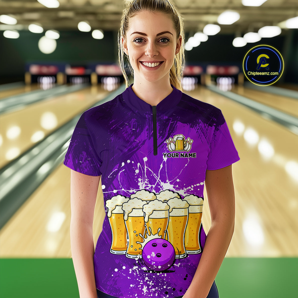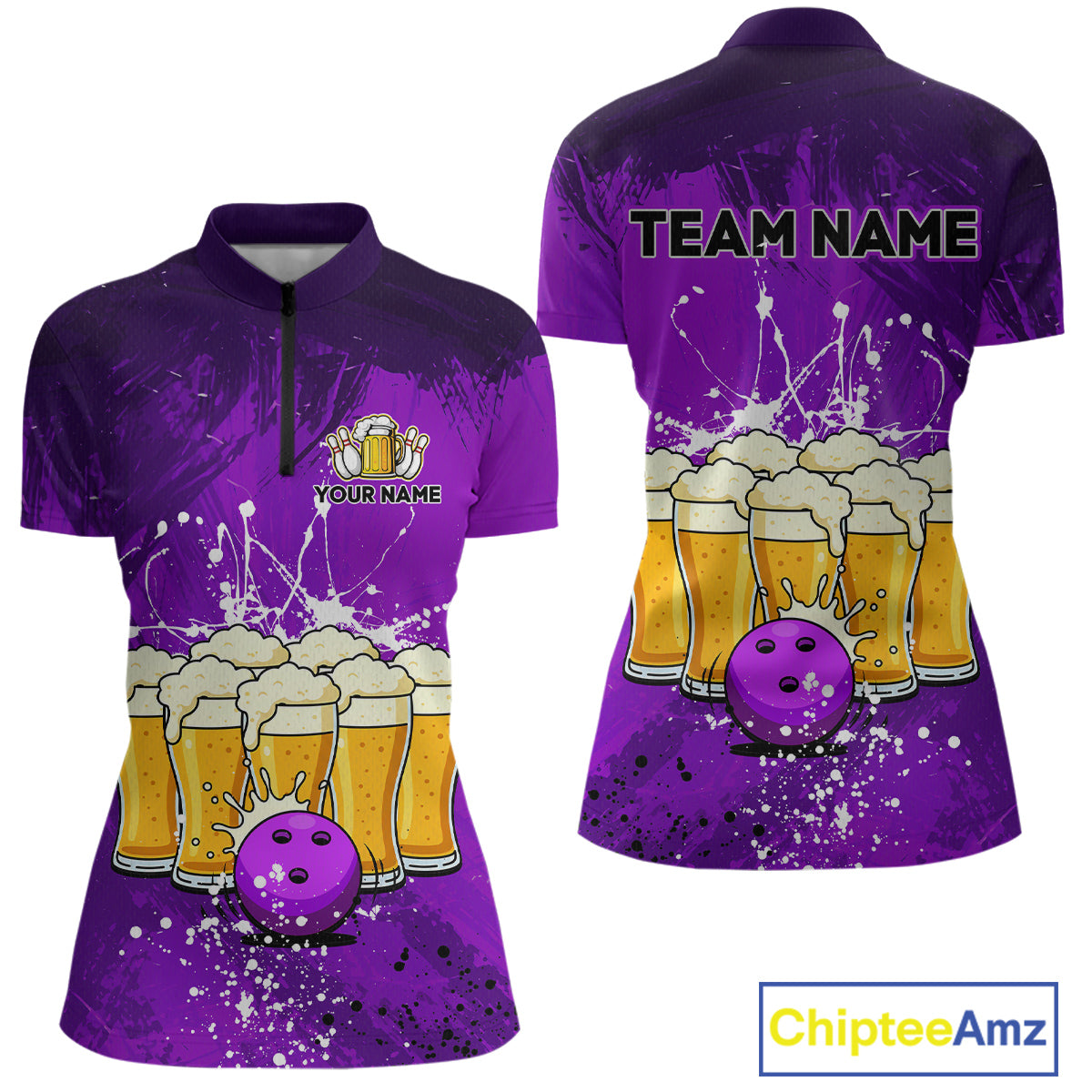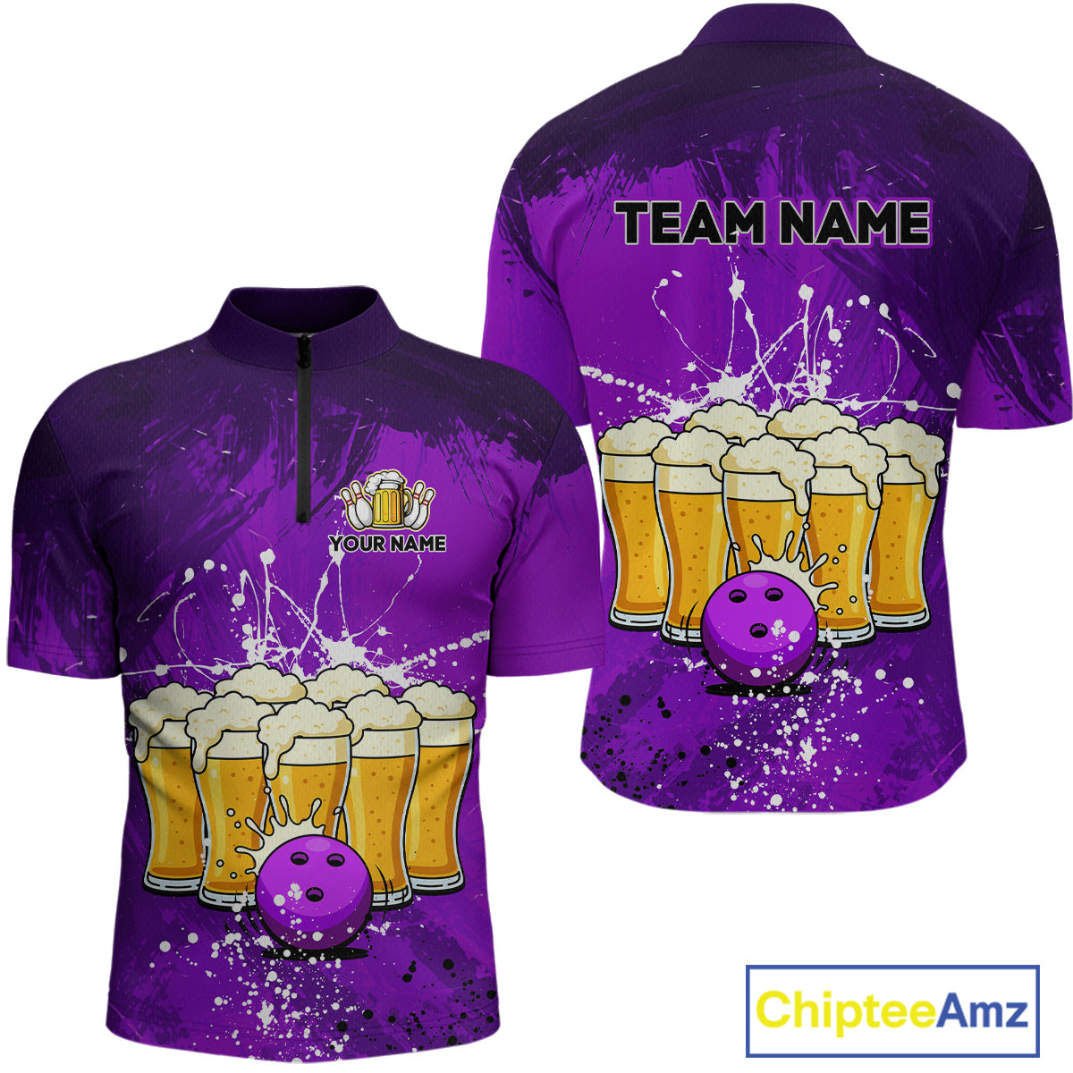 Beer Bowling Shirts Team Women Men Custom Purple Bowling Jersey Bowl League MBL249