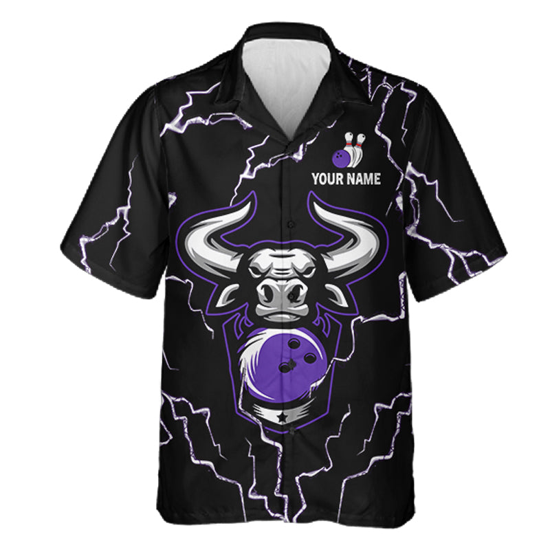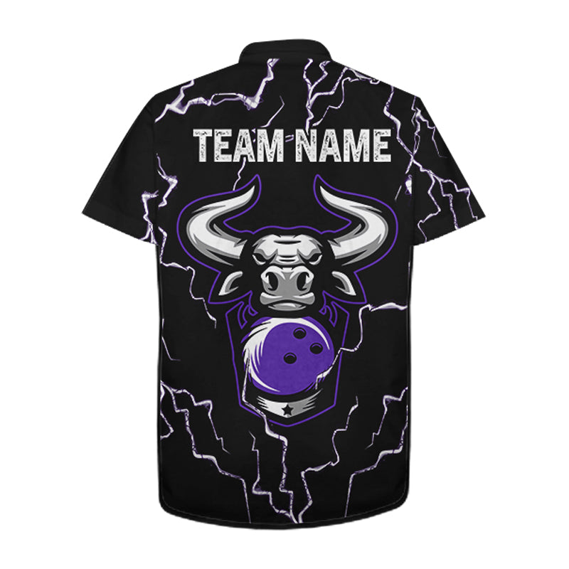 Bowling Bull Thunder Lightning Black & Purple Button-up bowling shirts custom Bowling Team Jersey NQS11419