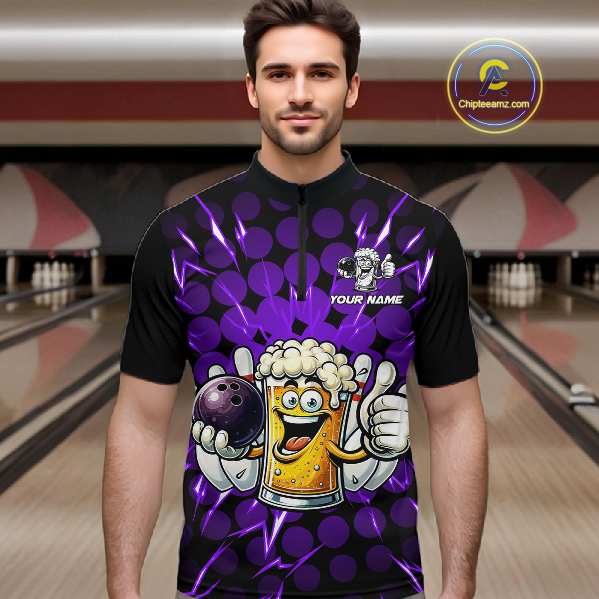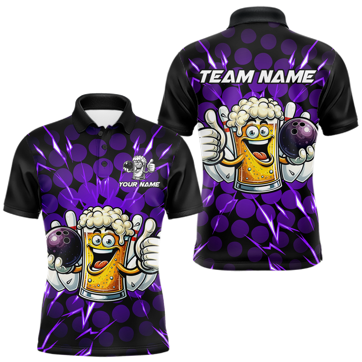 Custom Purple Funny Beer Bowling Jersey for Men Bowling Team Shirts Polo & 1/4 Zip HNT187