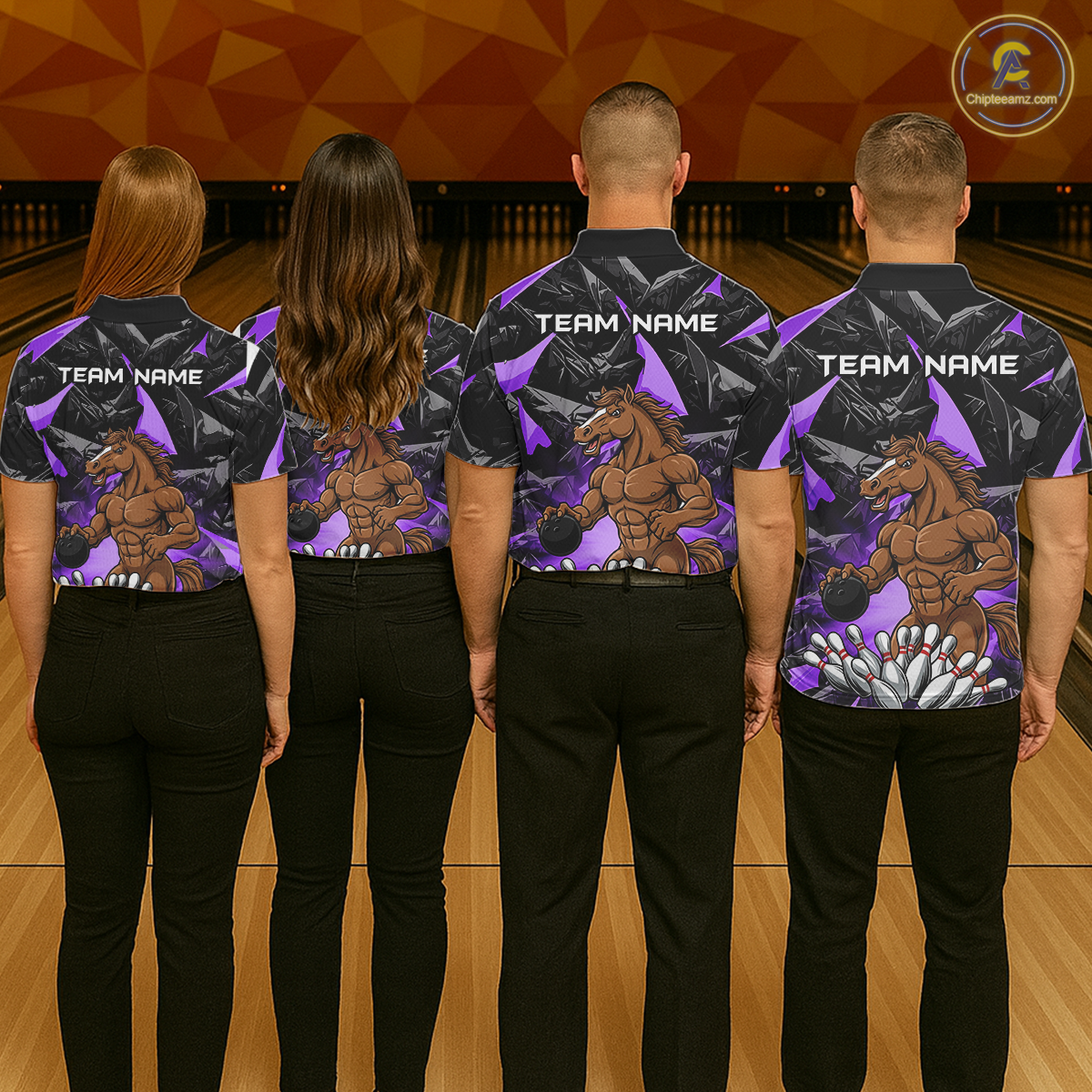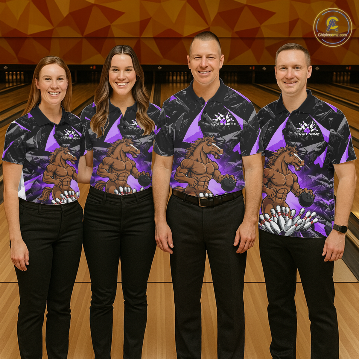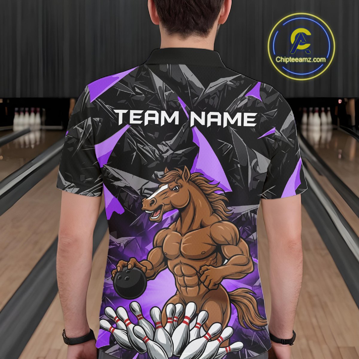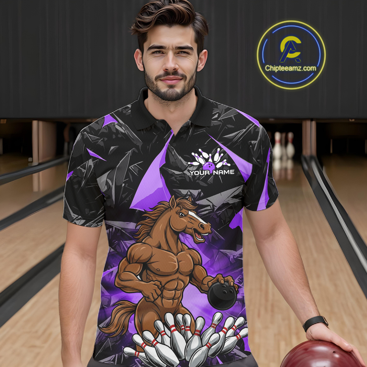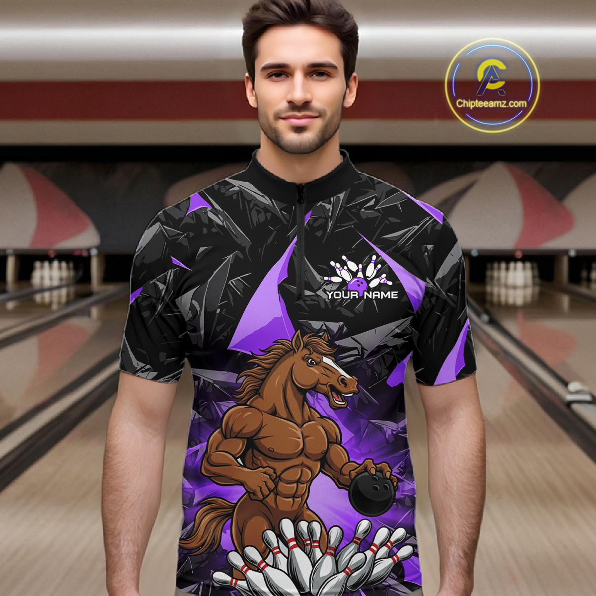 Custom Purple Funny Horse Bowling Jersey for Men Bowling Team Shirts Bowling League Polo & 1/4 Zip HNT183