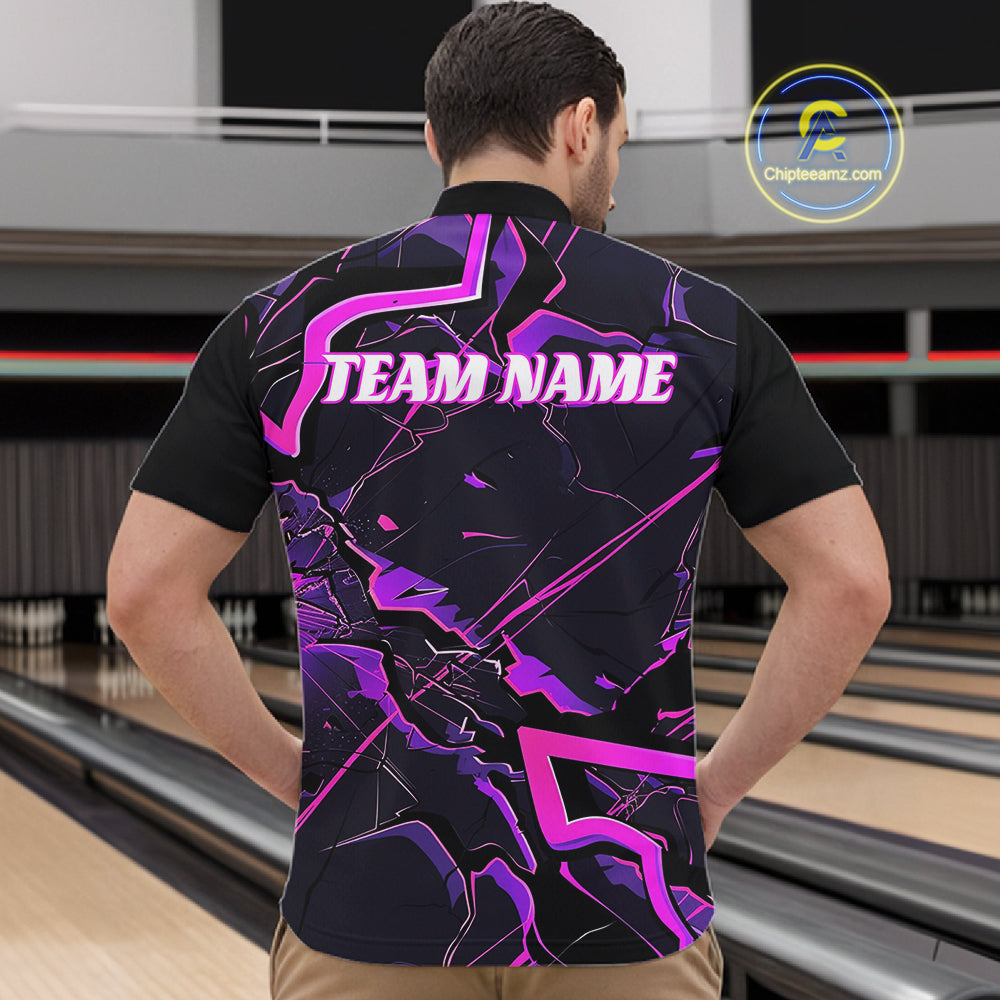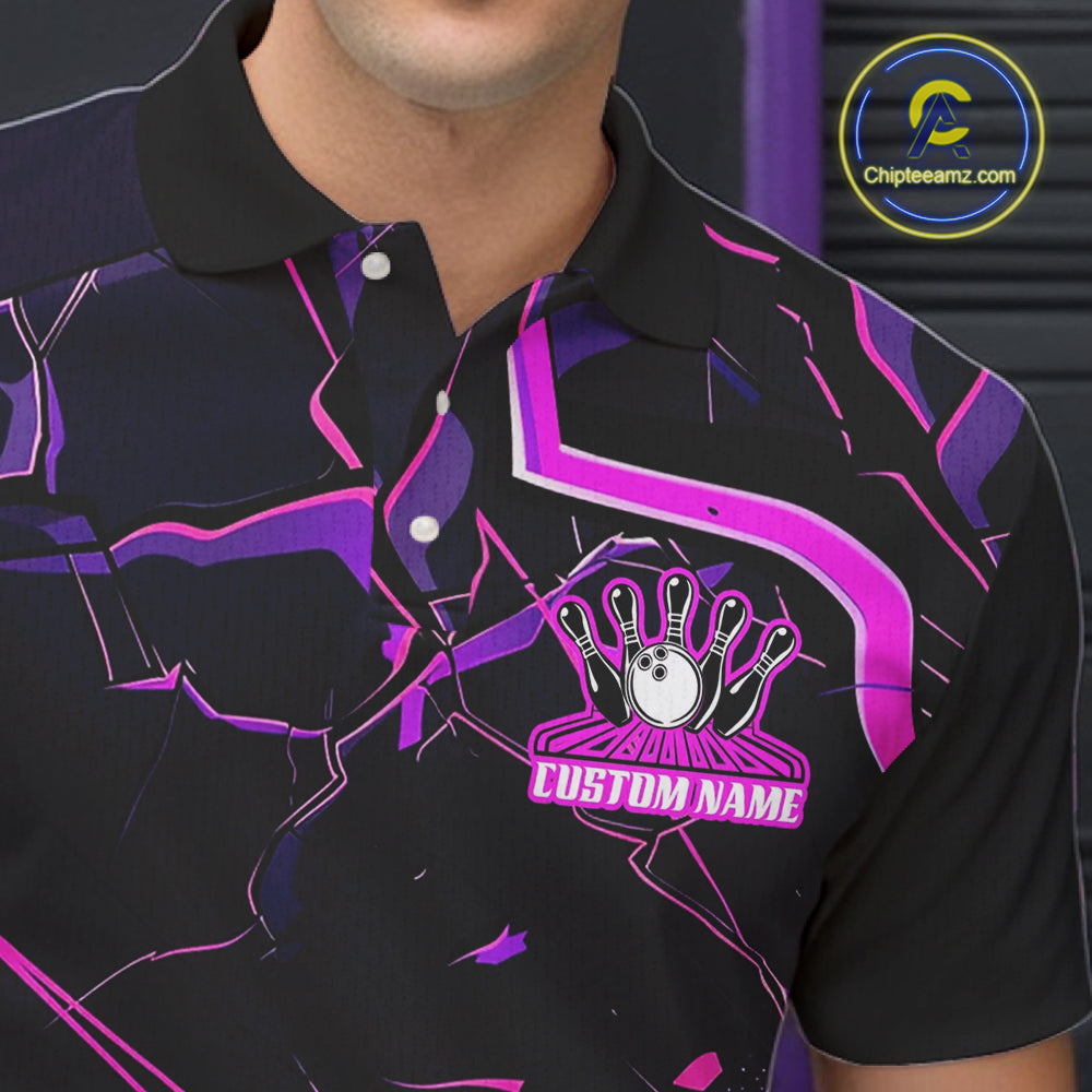 Pink And Purple Custom Bowling Team Shirts For Men And Women, Bowling Tournament Outfits IPHW6470
