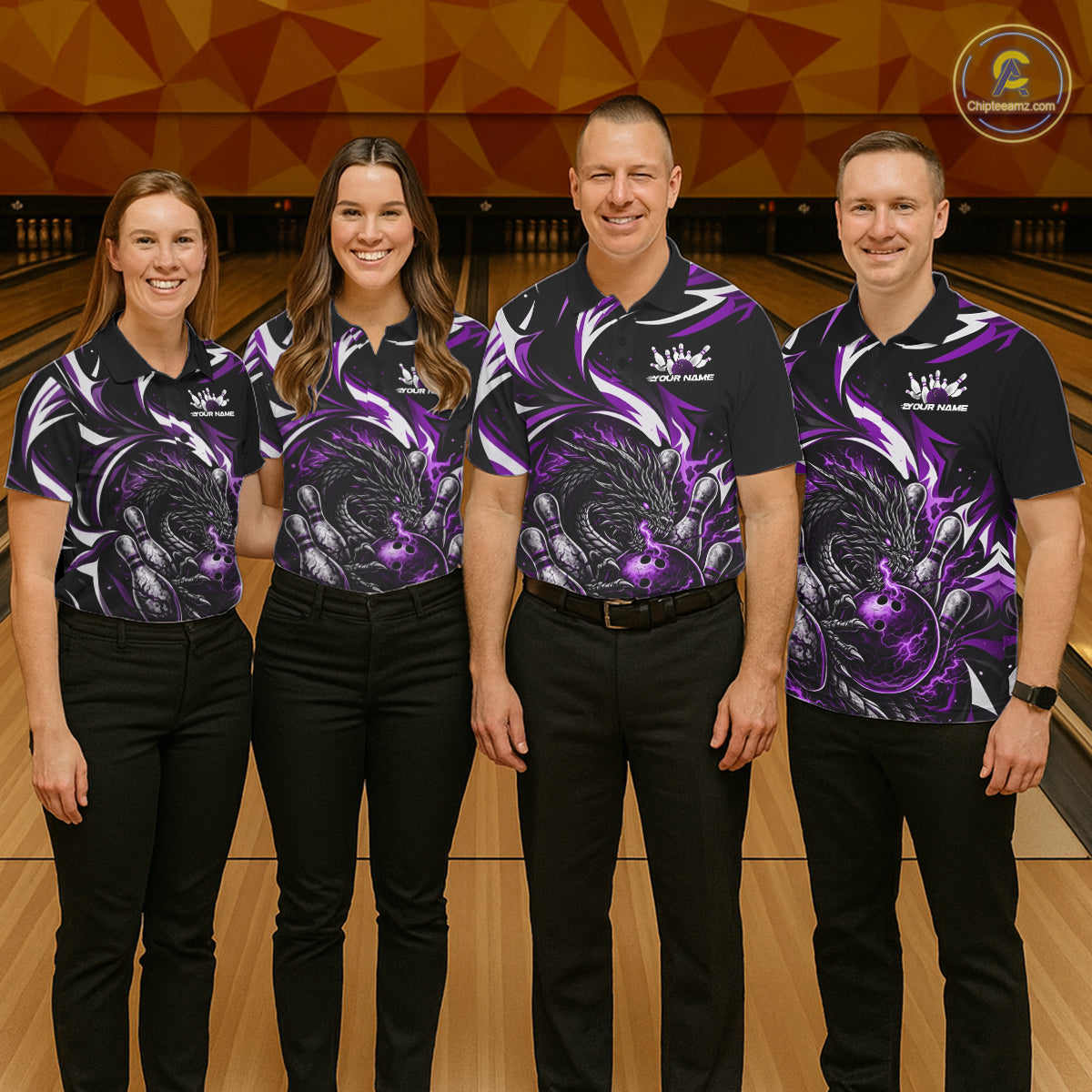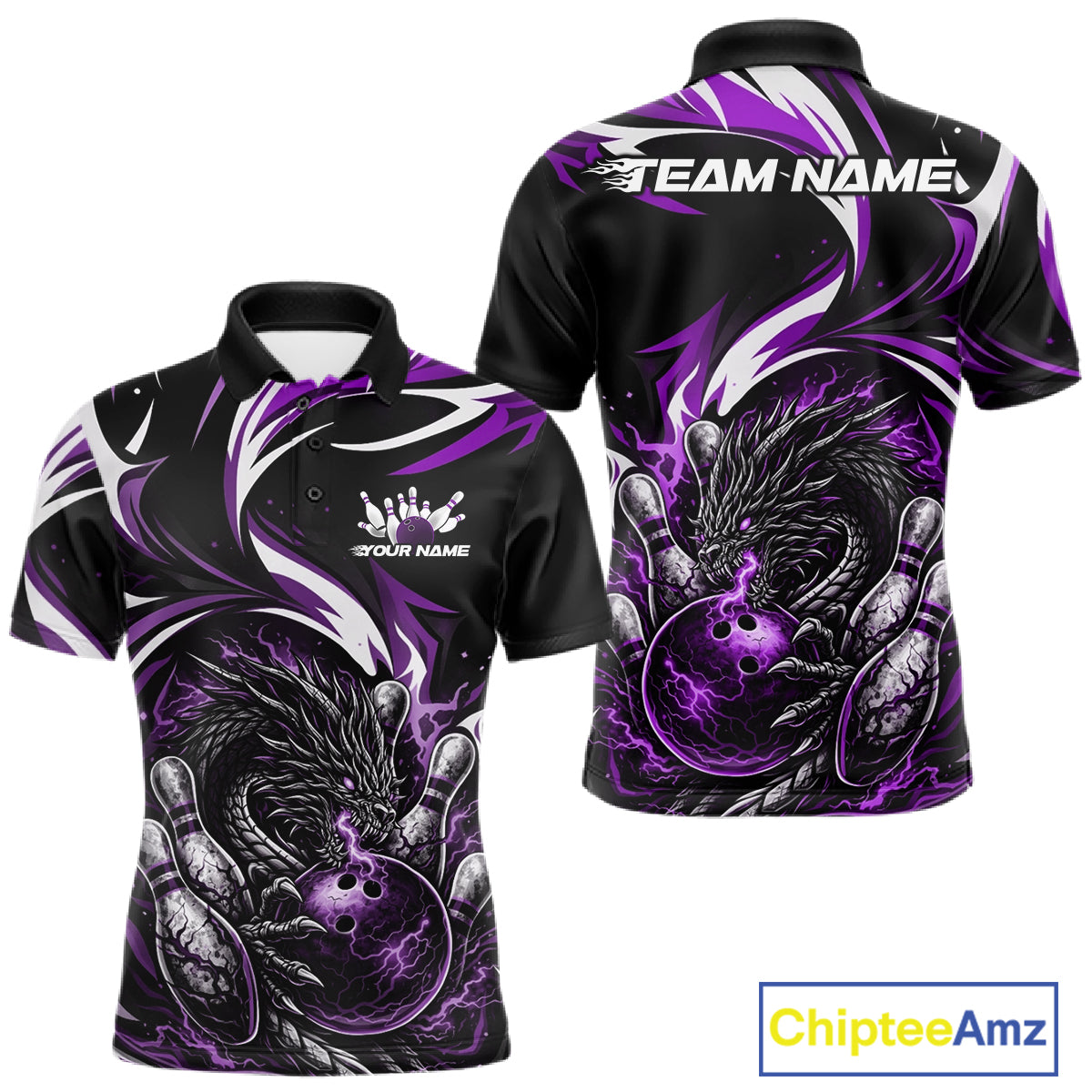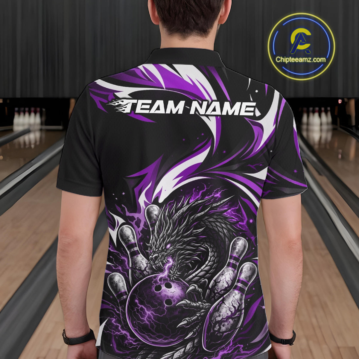 Custom Purple Lightning Dragon Bowling Men Polo Shirts, Dragon Bowling League Shirt IPHW10358