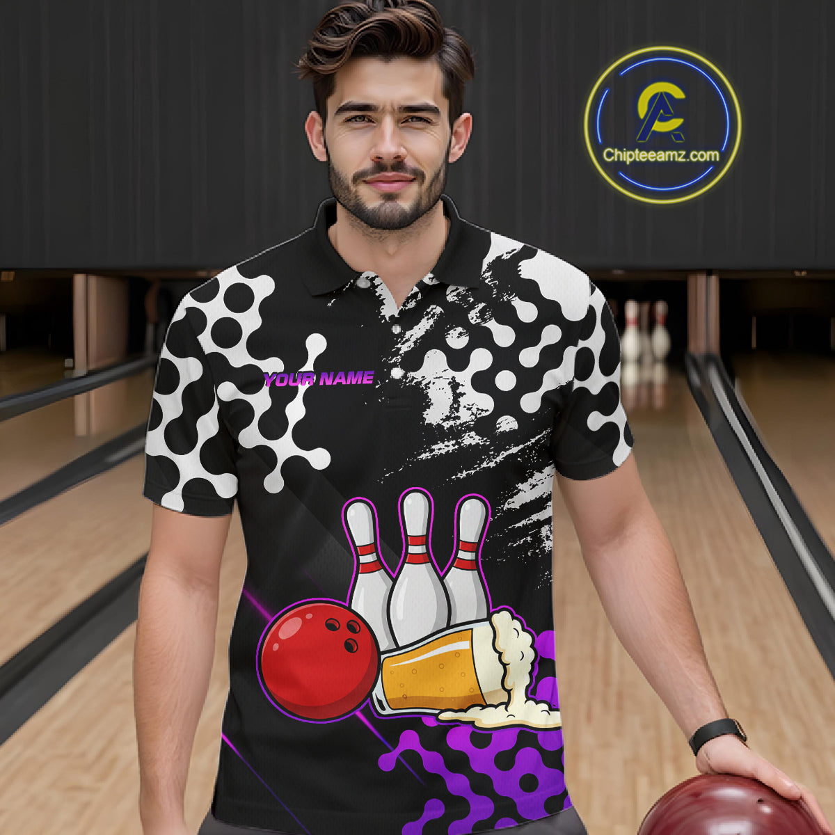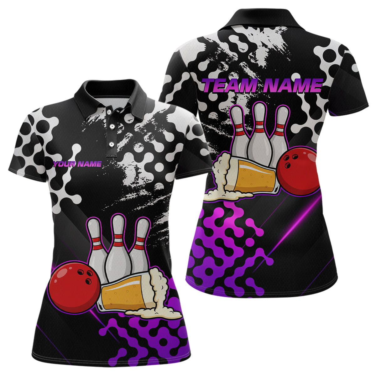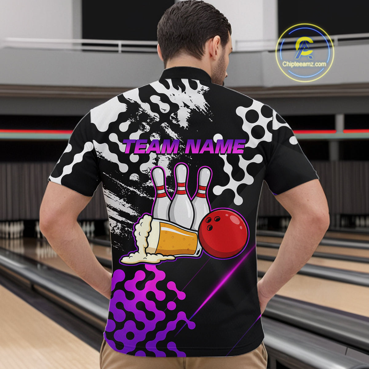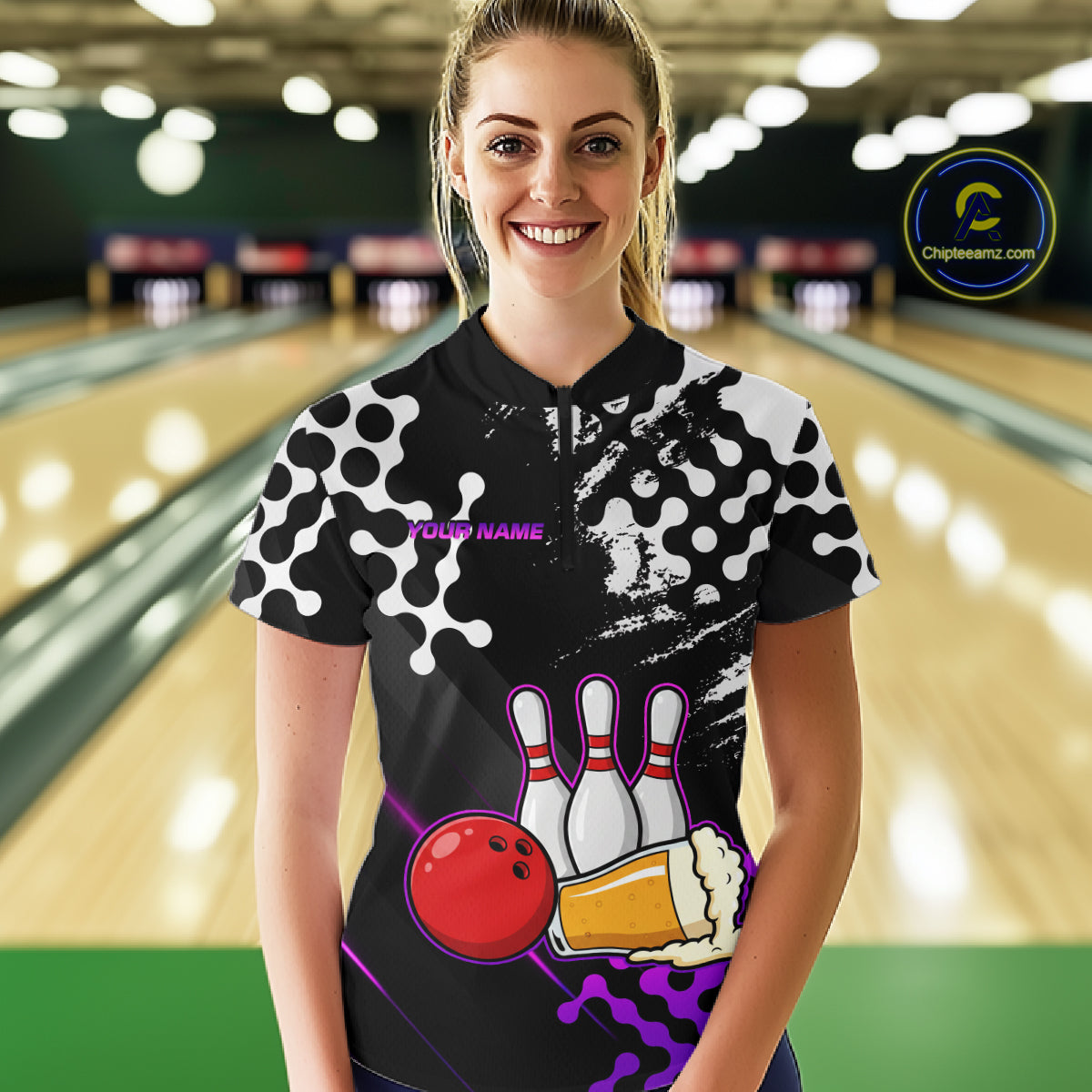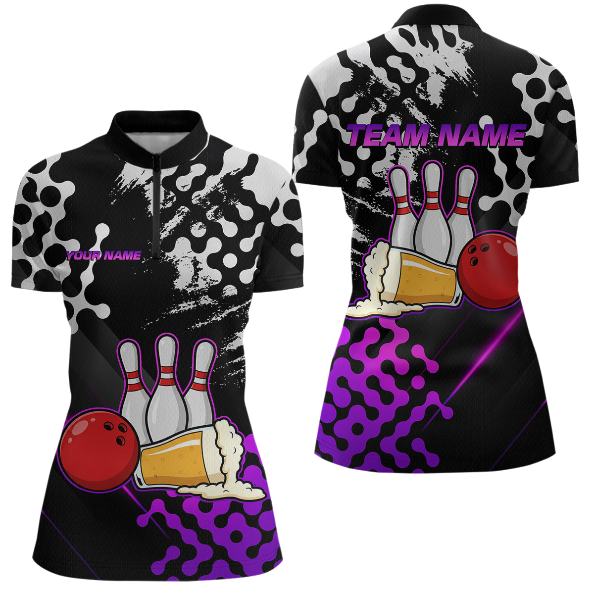 Purple Beer Bowling Shirts for Team Women Men Beer Bowling Polo&1/4 Zip Bowl League MBL255