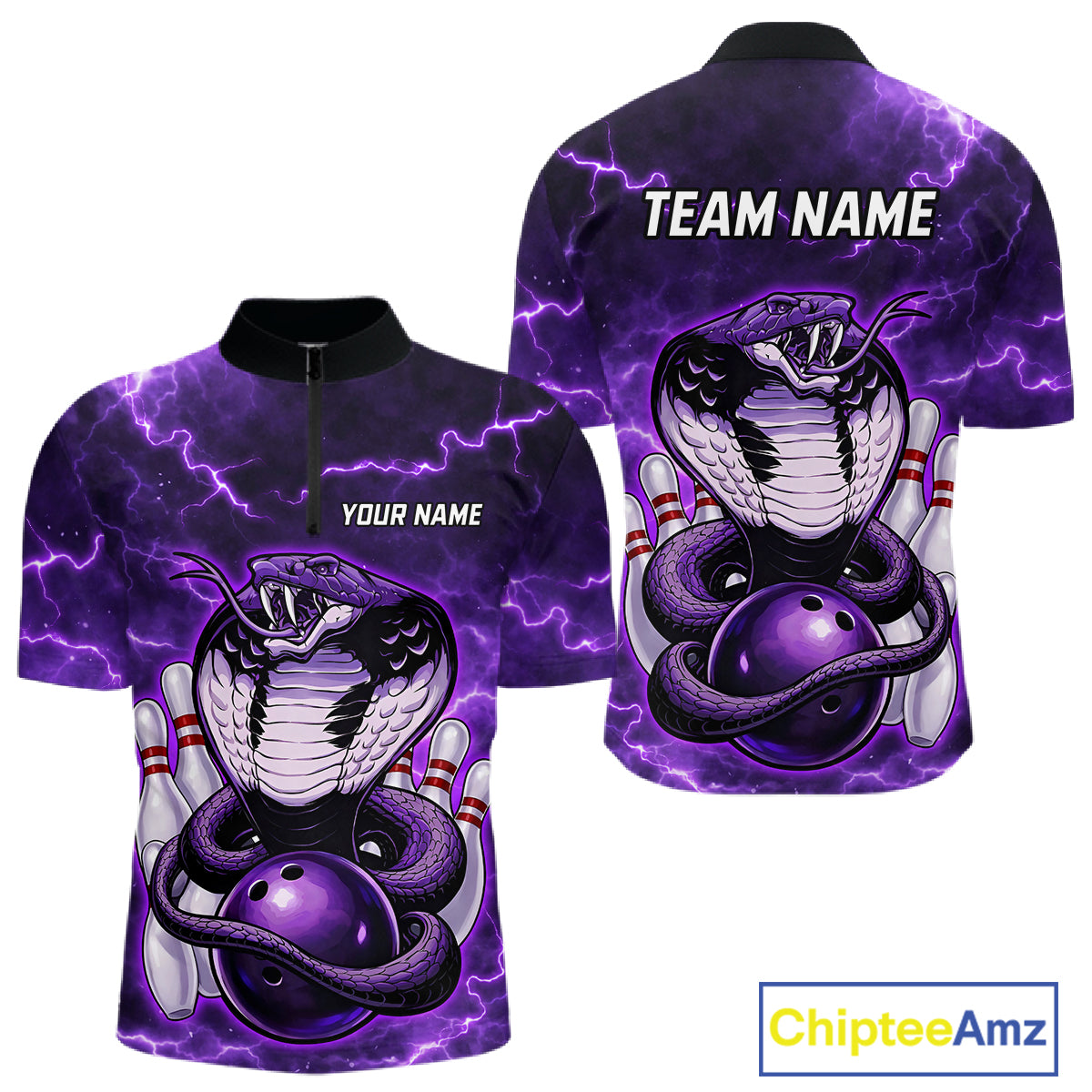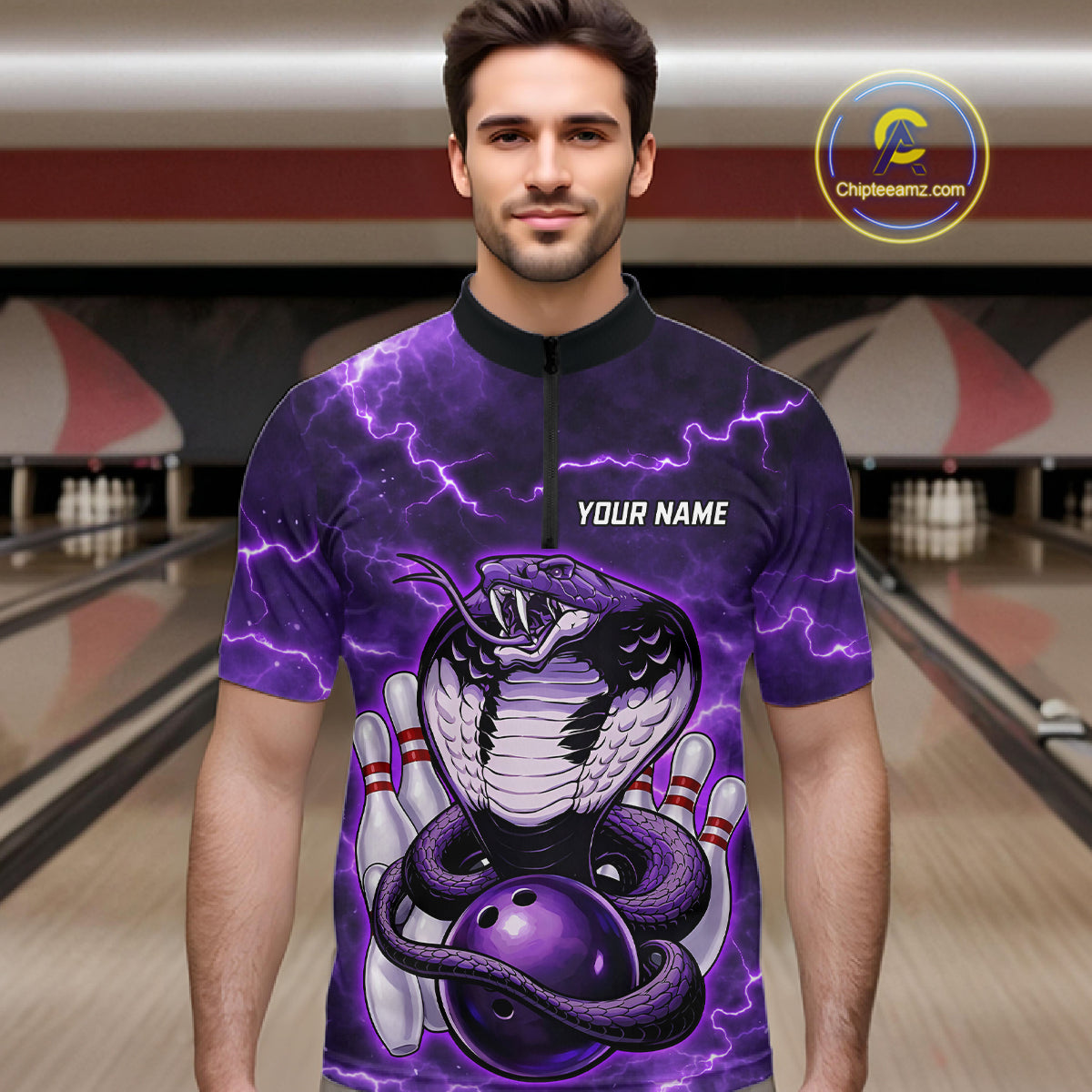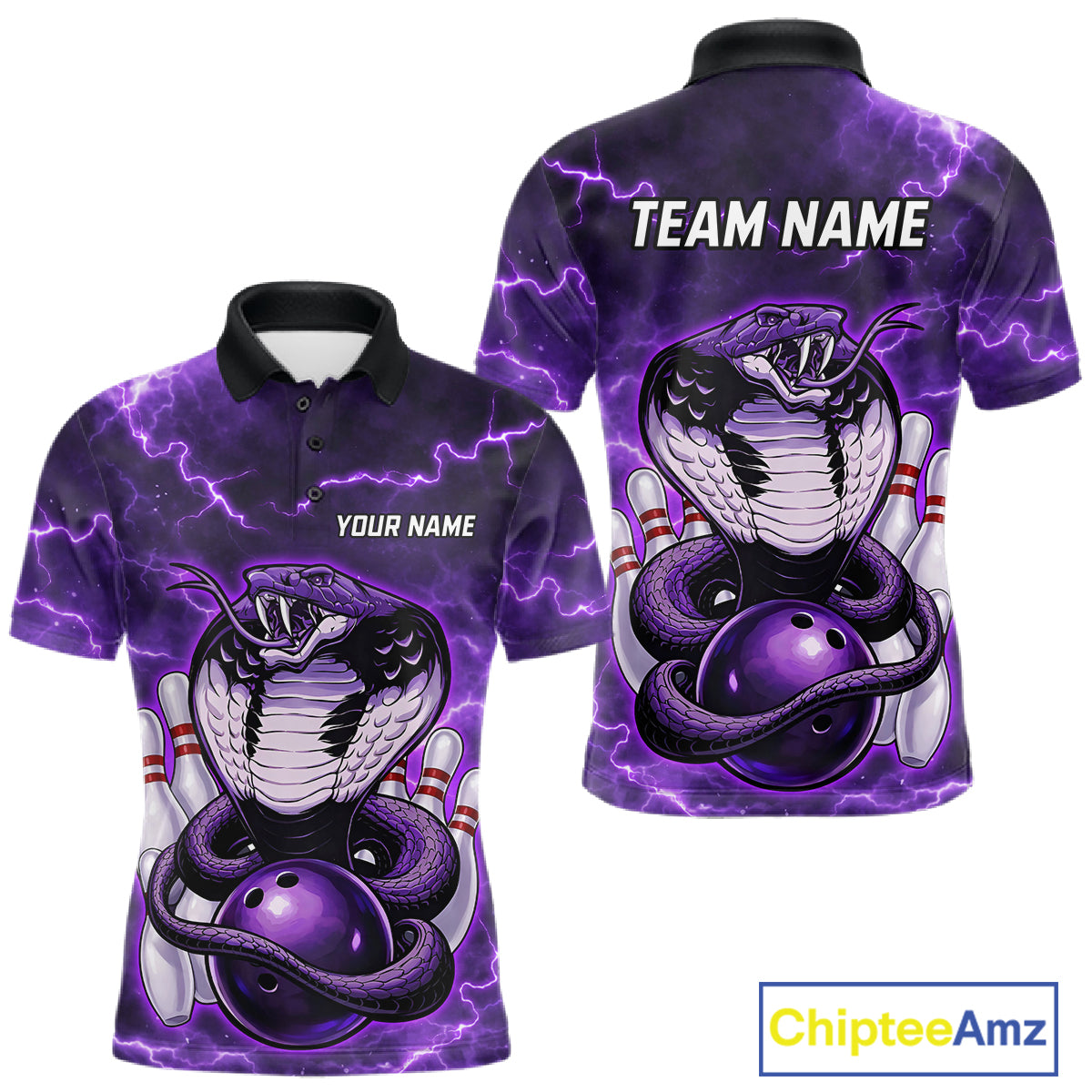 Purple Lightning thunder snake bowling shirts for men Custom bowling league shirts, gifts for bowlers NQS11402