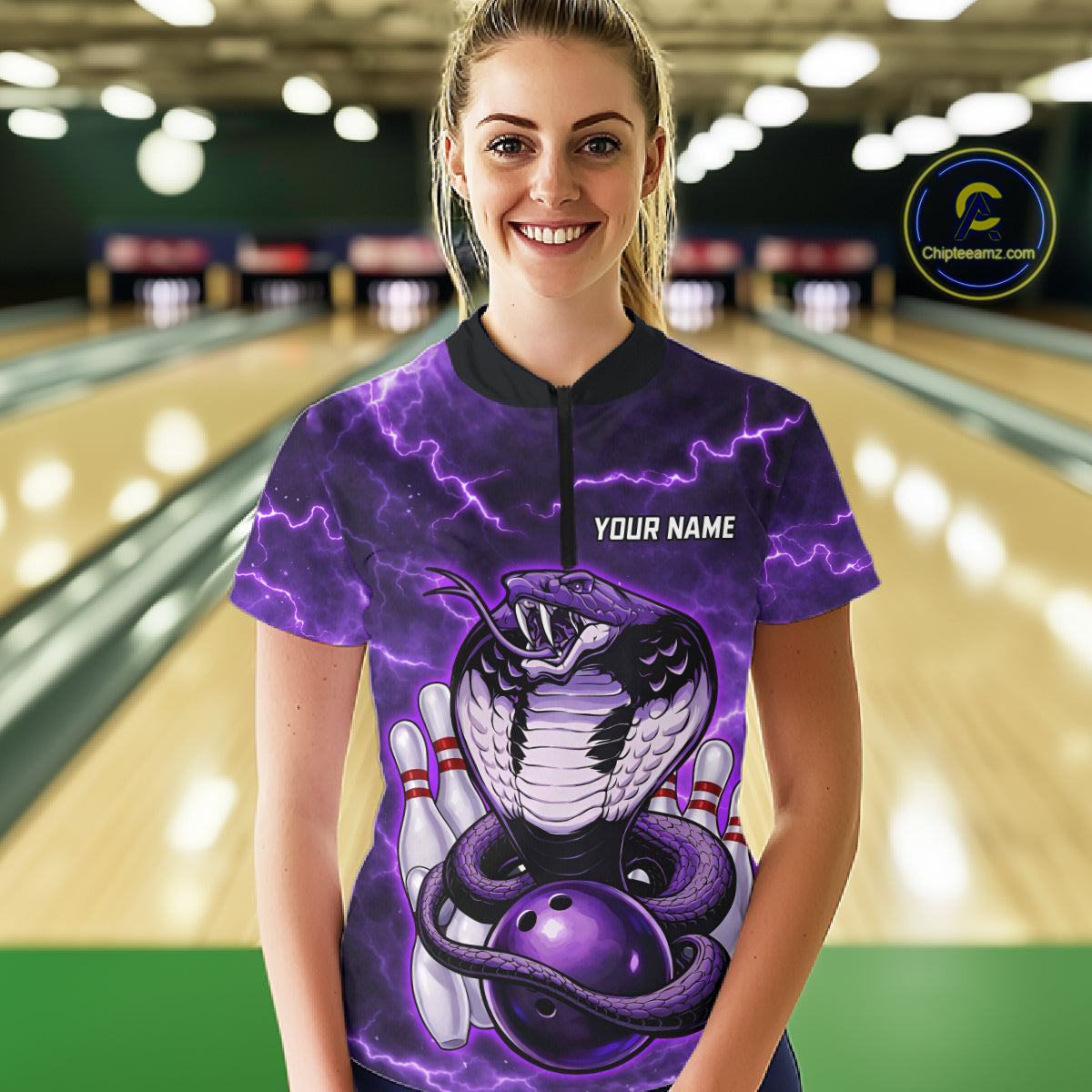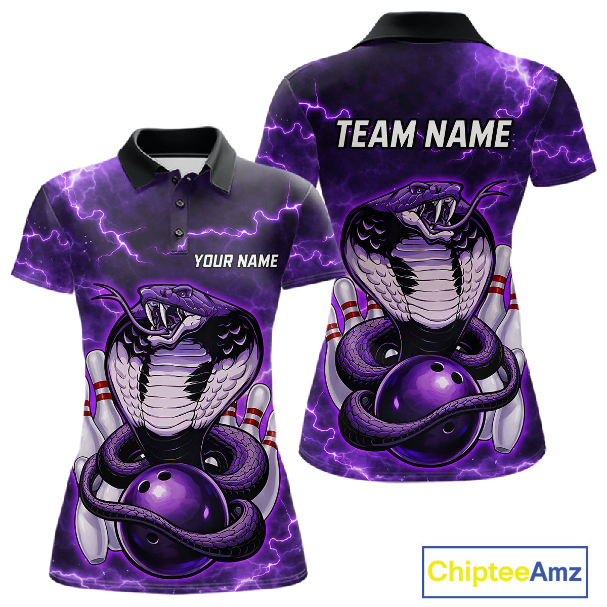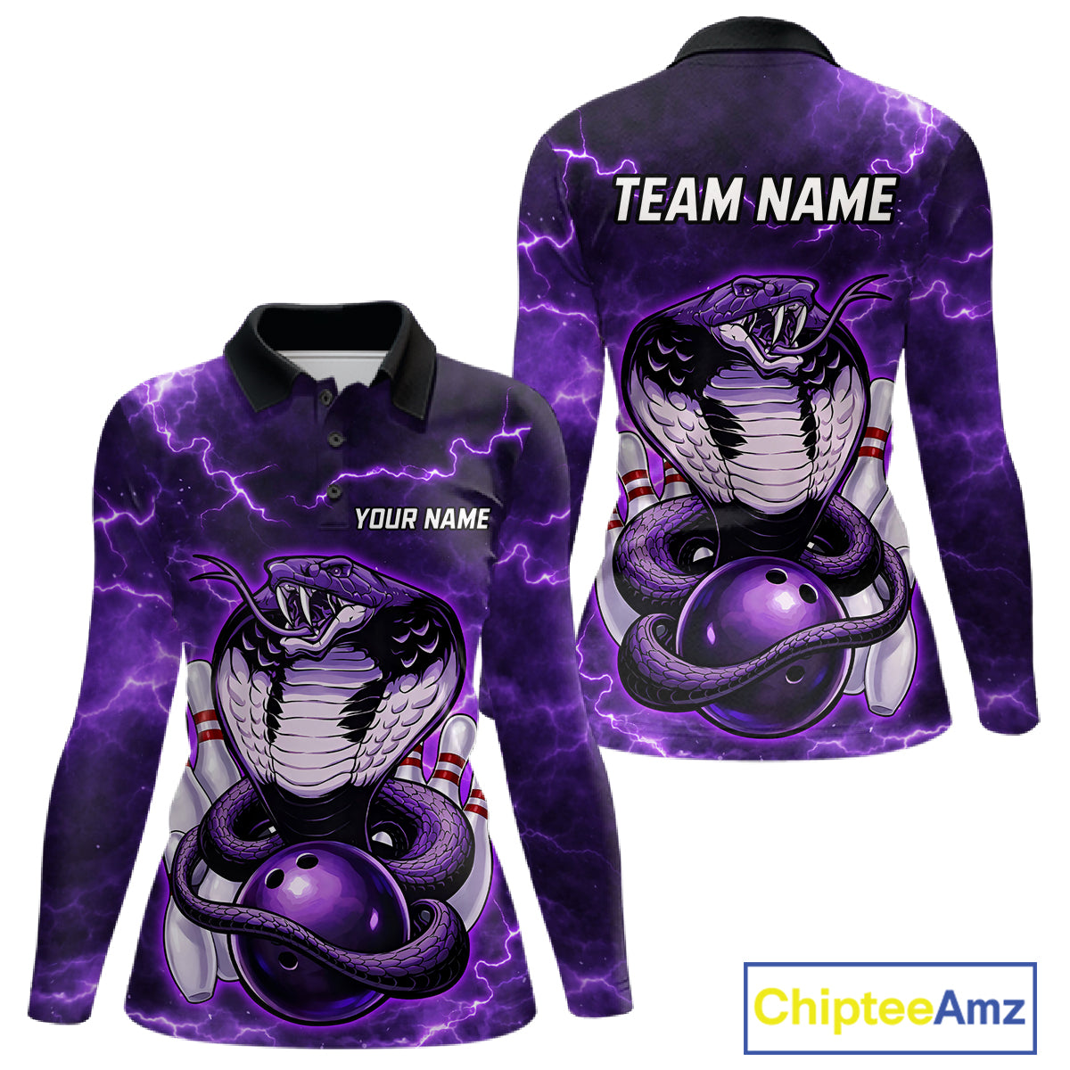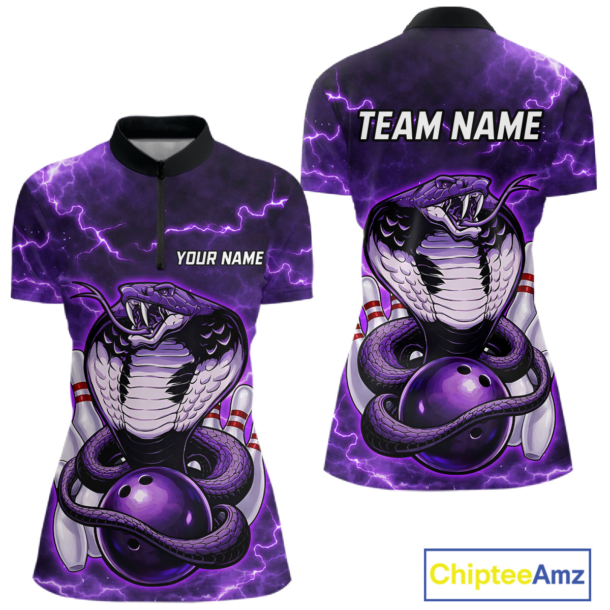 Purple Lightning thunder snake women's bowling shirts Custom bowling league shirts, gifts for bowlers NQS11402