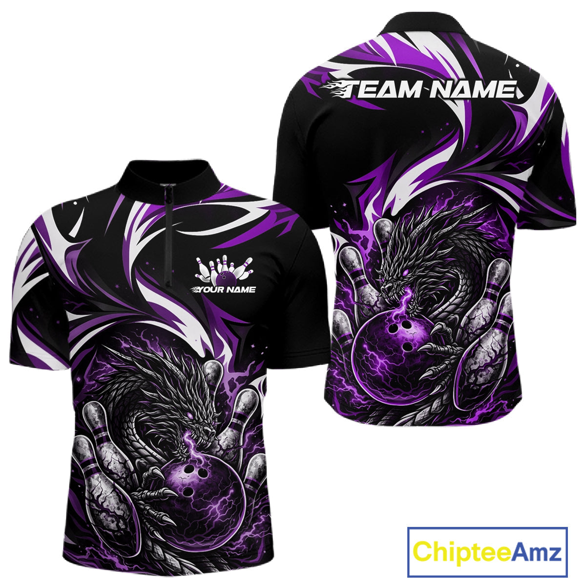 Custom Purple Lightning Dragon Bowling Men Quarter-Zip Shirts, Dragon Bowling League Shirt IPHW10358