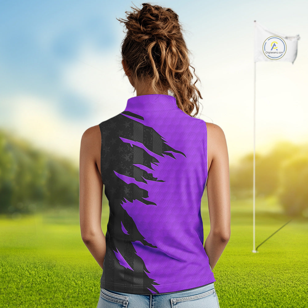 Womens sleeveless golf polos shirts purple golf ball skin black American flag ladies golf apparel NQS10071