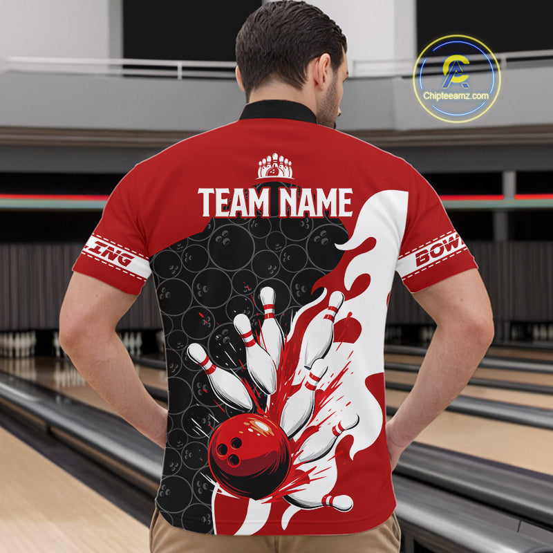 Black and Red Camo Bowling Polo, Quarter Zip Shirt For Men custom Bowling Team Jerseys Uniform NQS10380