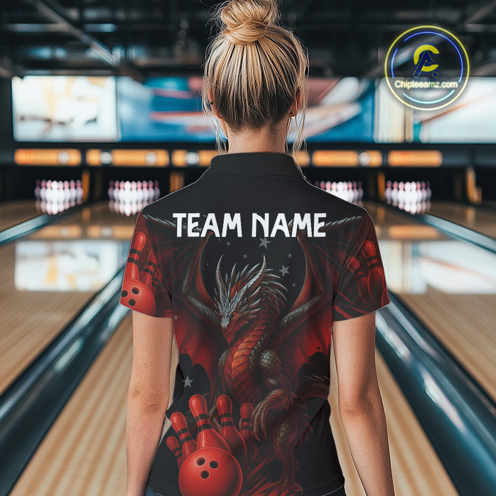 Black And Red Dragon Bowling Shirts For Women Custom Name Team Bowling League Jersey, Bowling Gifts NQS11091