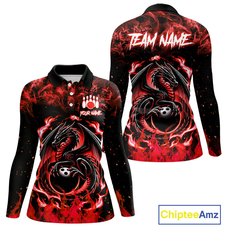 Black and Red Flame Dragon bowling shirts for Women Custom Bowling Team Jersey, gift for Bowler NQS10245