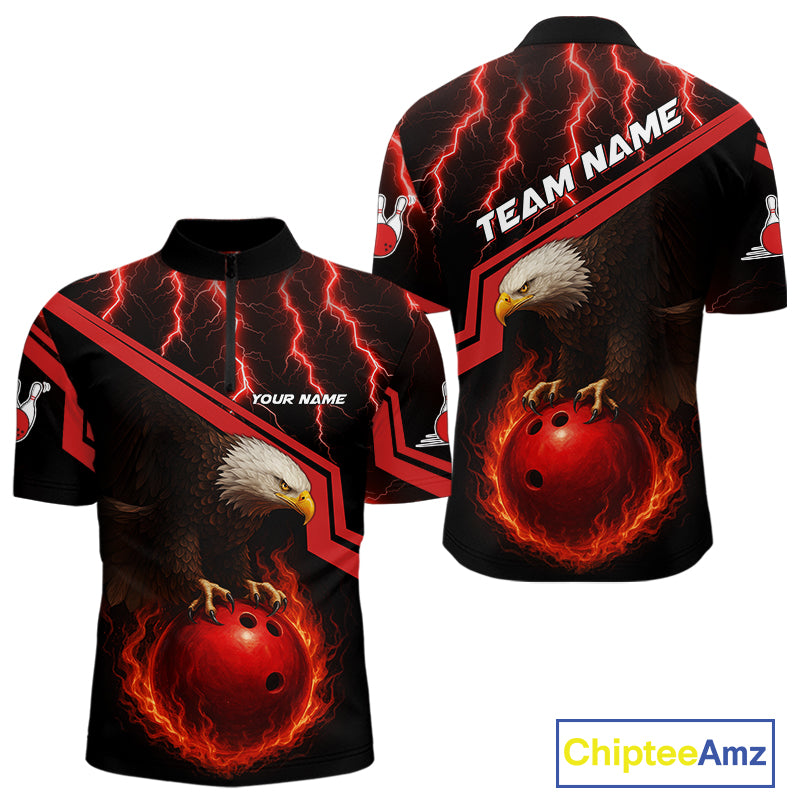 Black and Red Flame Lightning Thunder Eagle Bowling Shirts for Men Custom Bowling Team League Outfit NQS10917
