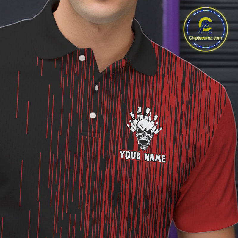 Black and Red pattern Flame Skull Bowling shirts for Men custom bowling jersey for team mens bowler NQS10254