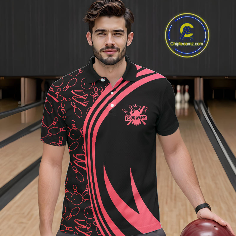 Black Mens bowling shirts Custom Red neon team league bowling jerseys, gifts for bowlers NQS9983