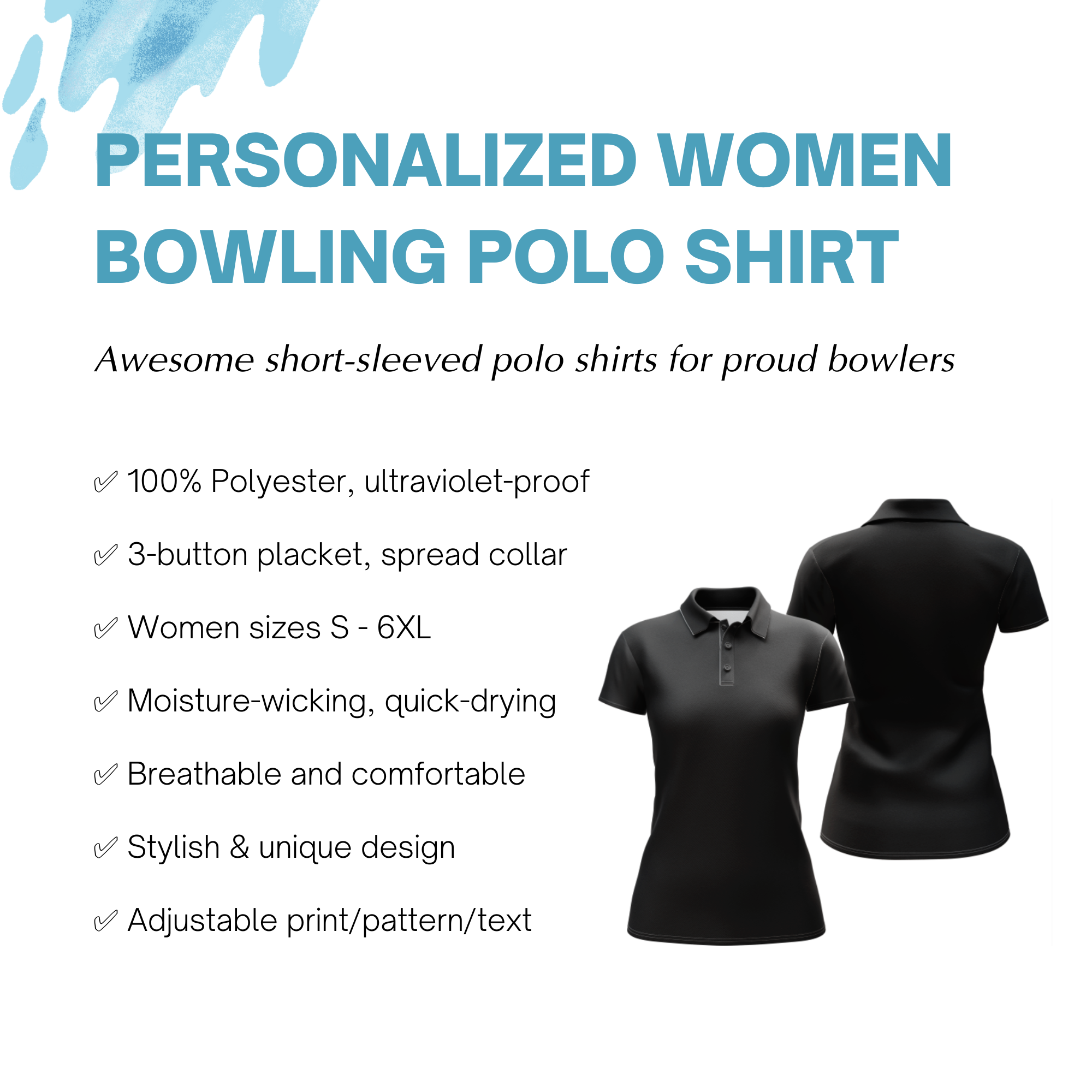 ✔️ REGULAR FIT WOMEN - Our polo shirts are ideal for women bowlers. Available in sizes S - 5XL, we strongly recommend you to check the size chart in the product image gallery to find your best-fitted size.