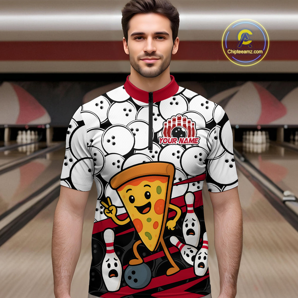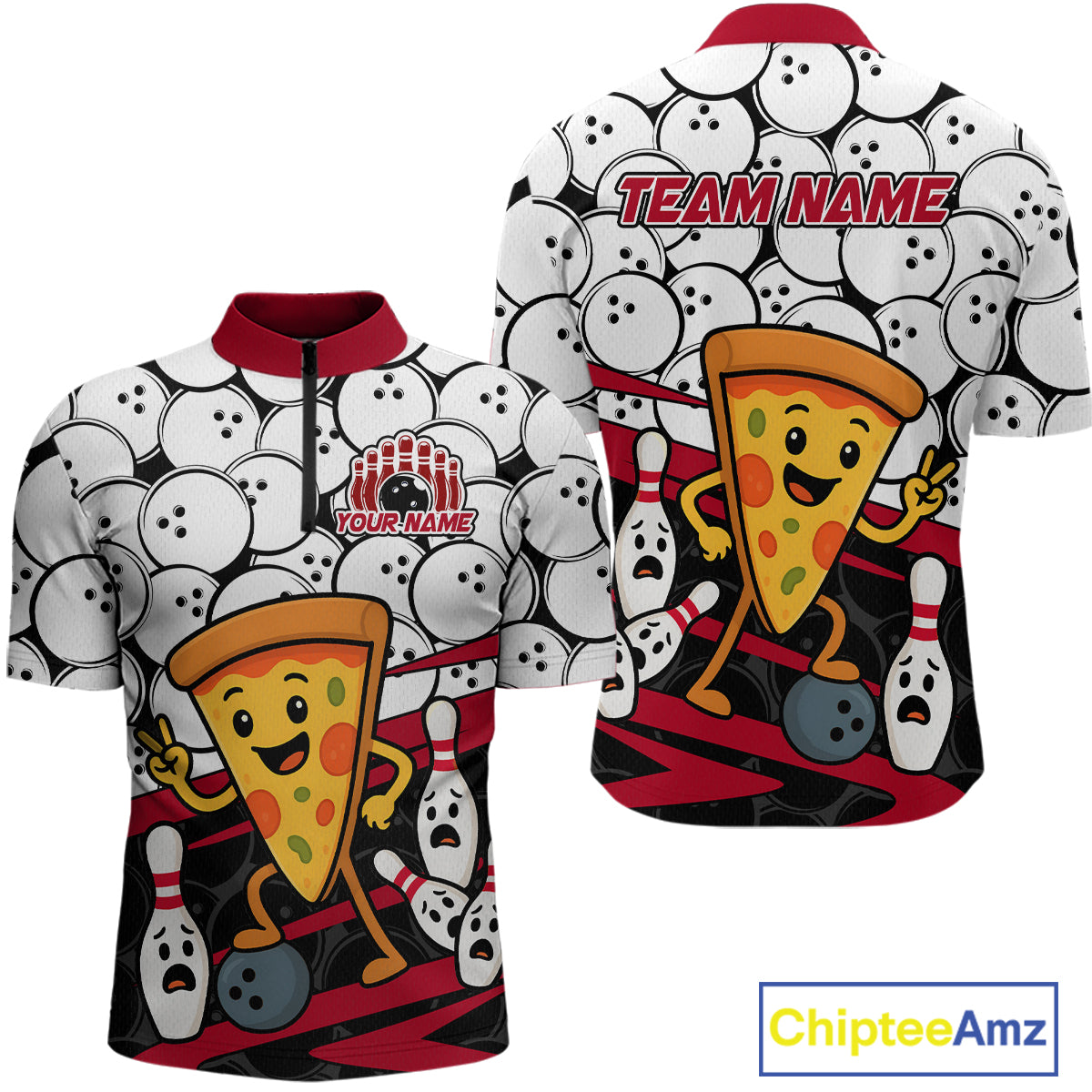Custom Red Funny Pizza Bowling Shirt Bowling with Food for Men Polo Bowling Jersey QZT799