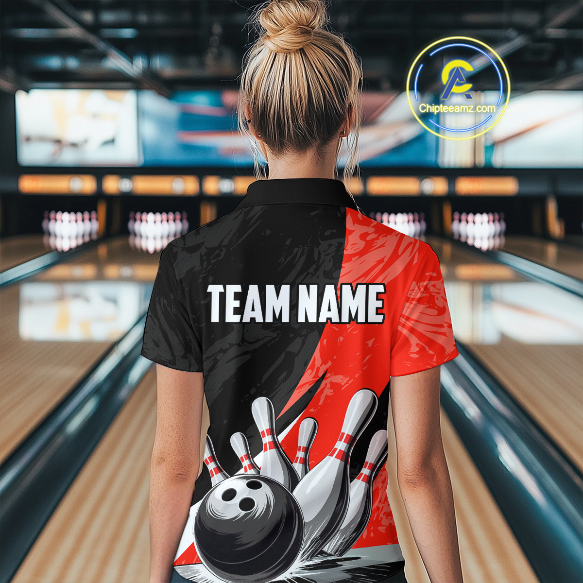 Custom Red Bowling Custom Women Bowling Shirt Polo & Quarter-Zip Bowling Team Jerseys HNT75