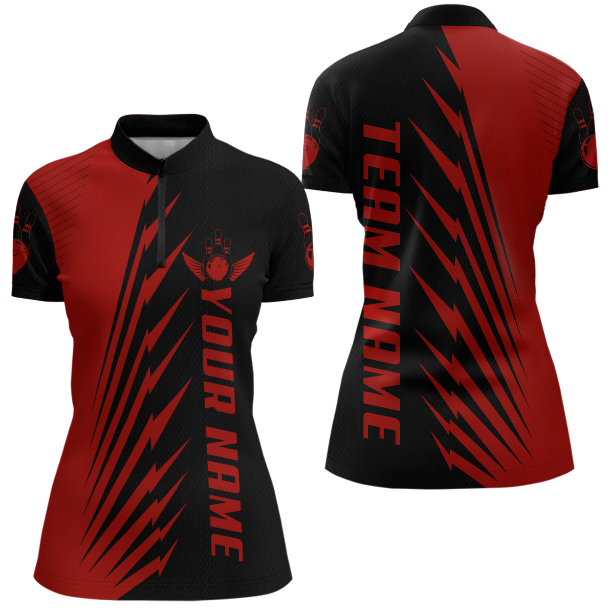 Custom Red Bowling Shirts for Men Women Team Bowling Polo & 1/4 Zip Shirt MBL48