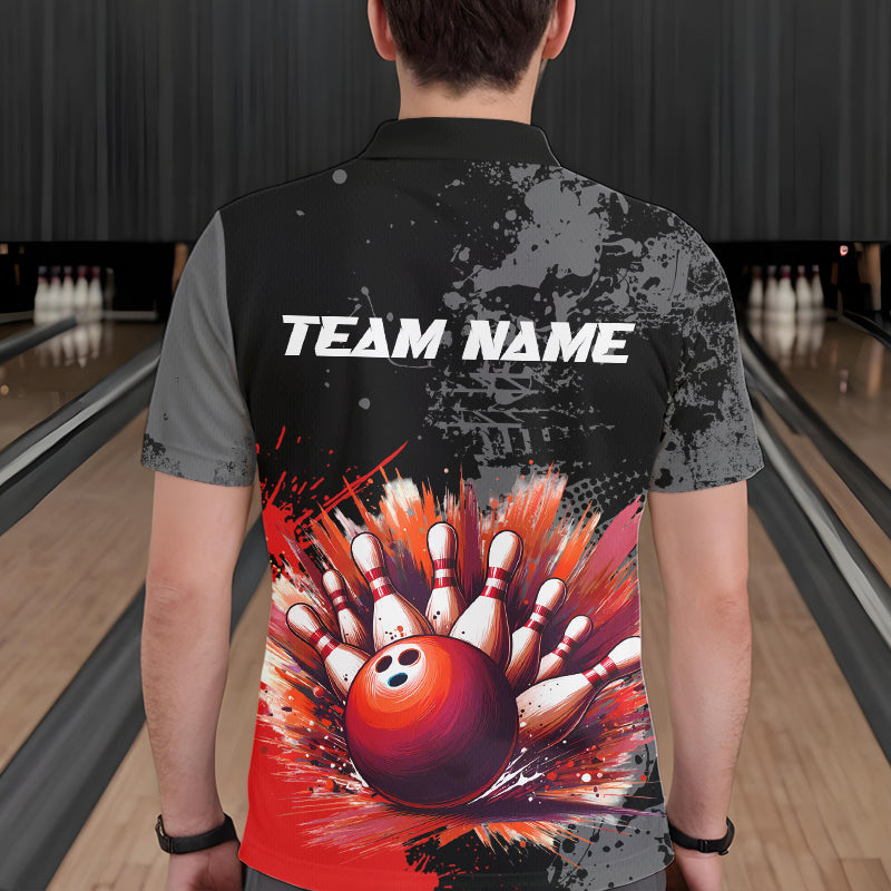 Custom Red Bowling Shirts for Men Women Team Bowling Polo and Quarter Zip for Bowler MBL75
