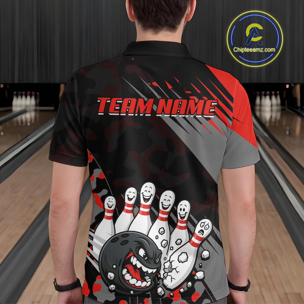 Custom Red Funny Bowling Shirt Crazy Bowling Jersey Men Polo & 1/4 Zip Bowling Outfit QZT785