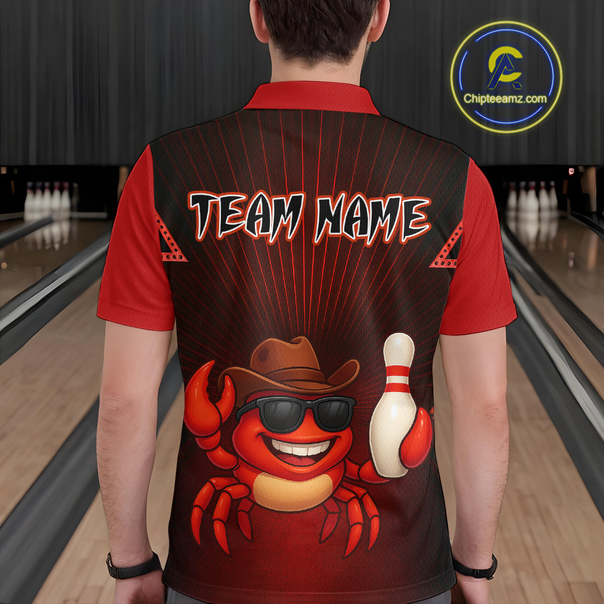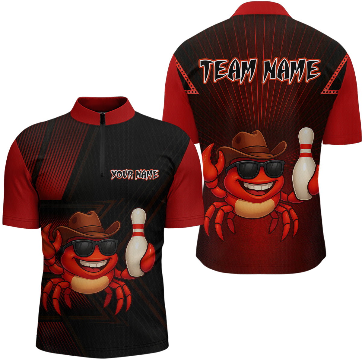 Custom Red Funny Crab Bowling Team Shirt Men Bowling Jersey Outfit Polo & 1/4-Zip Bowler Gift QZT757