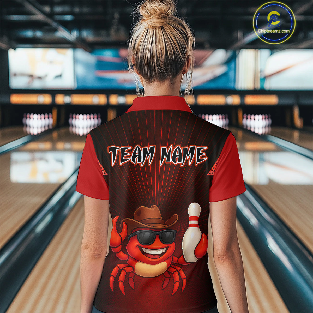 Custom Red Funny Crab Bowling Team Shirt Women Bowling Jersey Outfit Polo & 1/4-Zip Bowler Gift QZT757