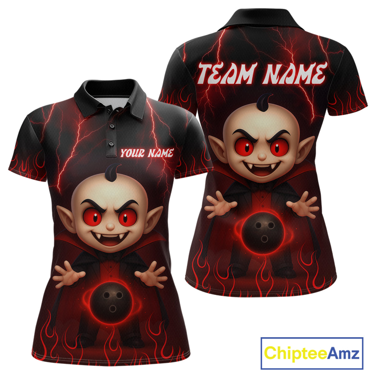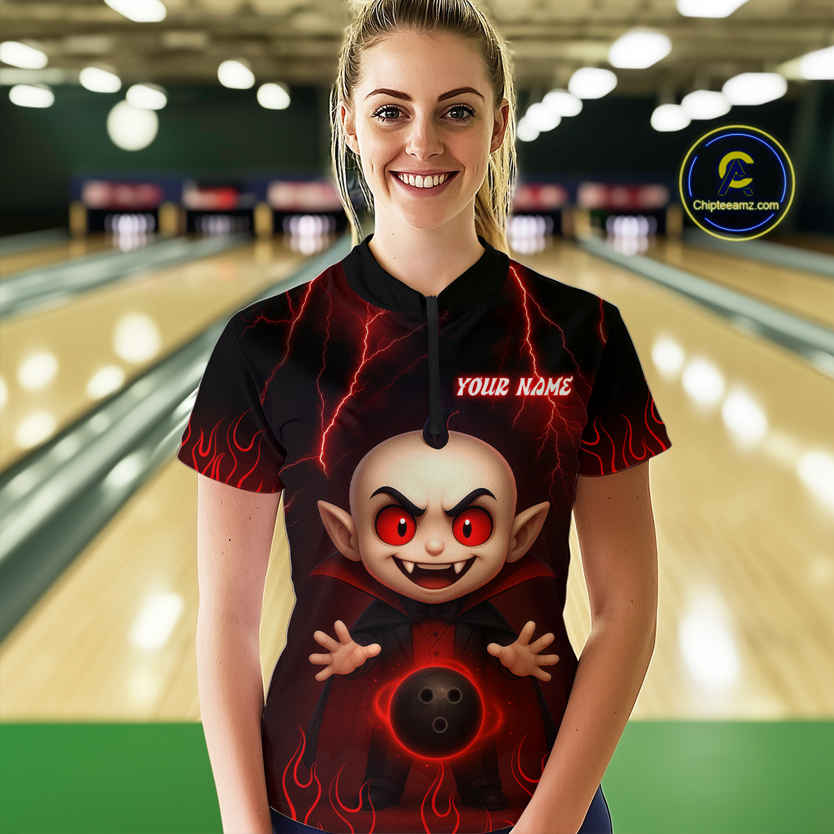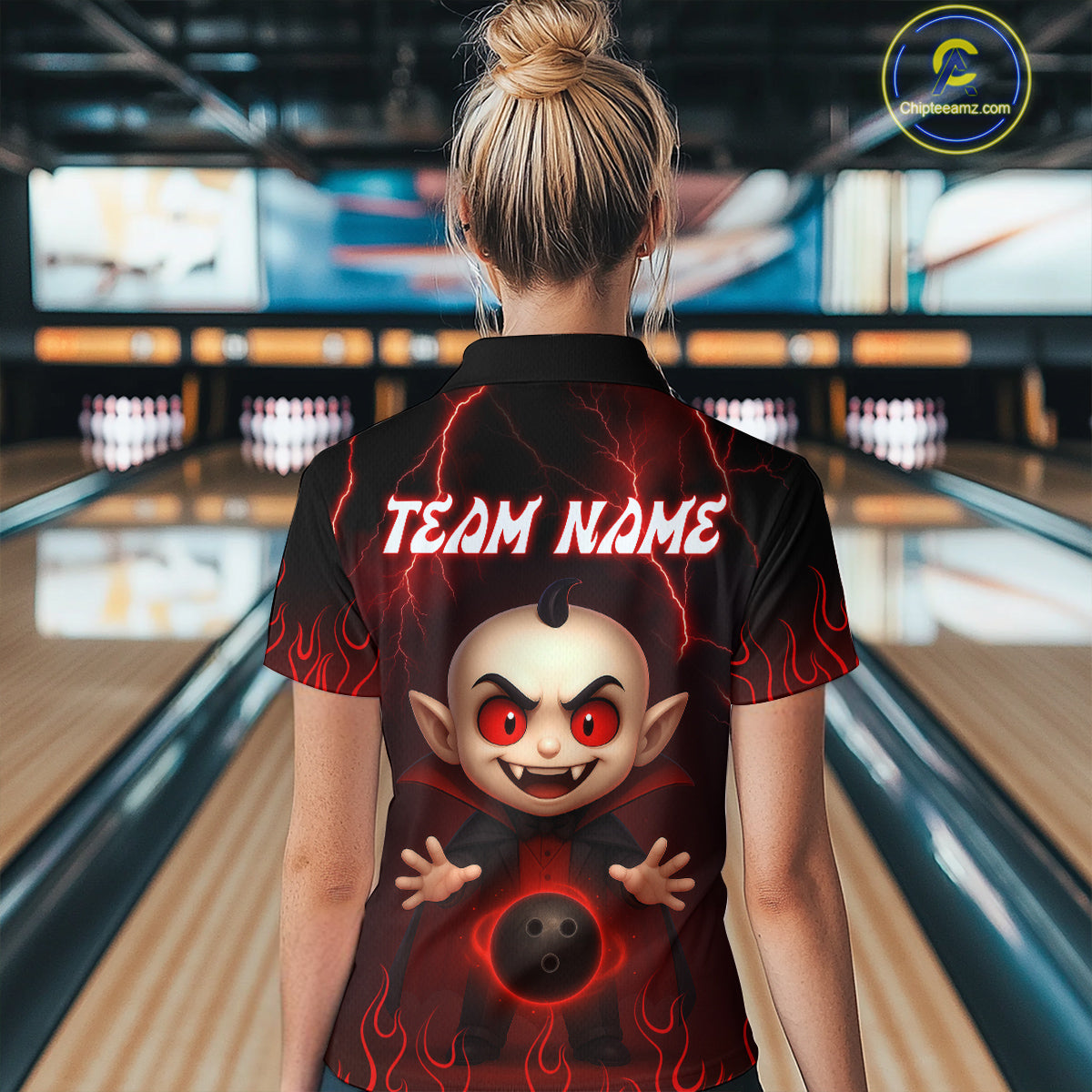 Custom Red Funny Vampire Thunder Bowling Shirt Polo & 1/4-Zip Bowling League Jersey for Women Outfit QZT753